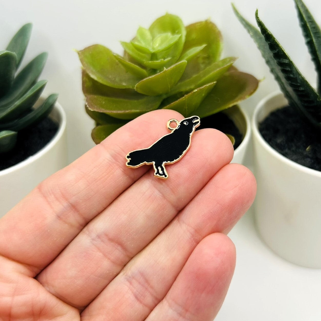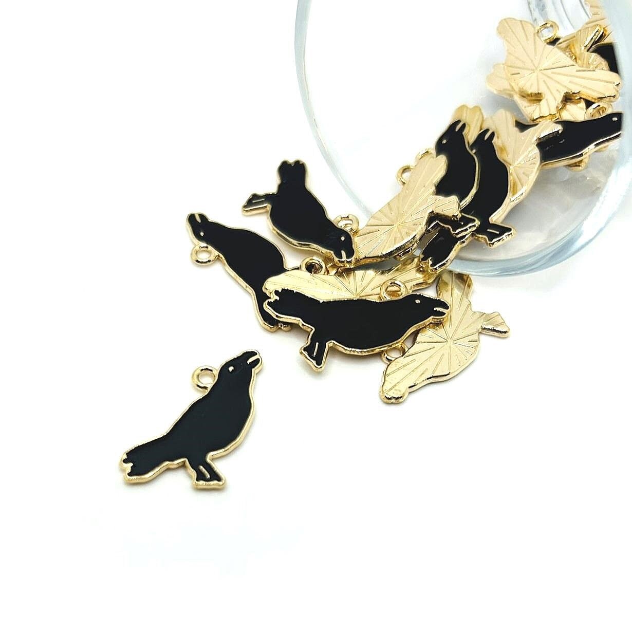 Enamel Raven / Crow Charms, 22x17mm