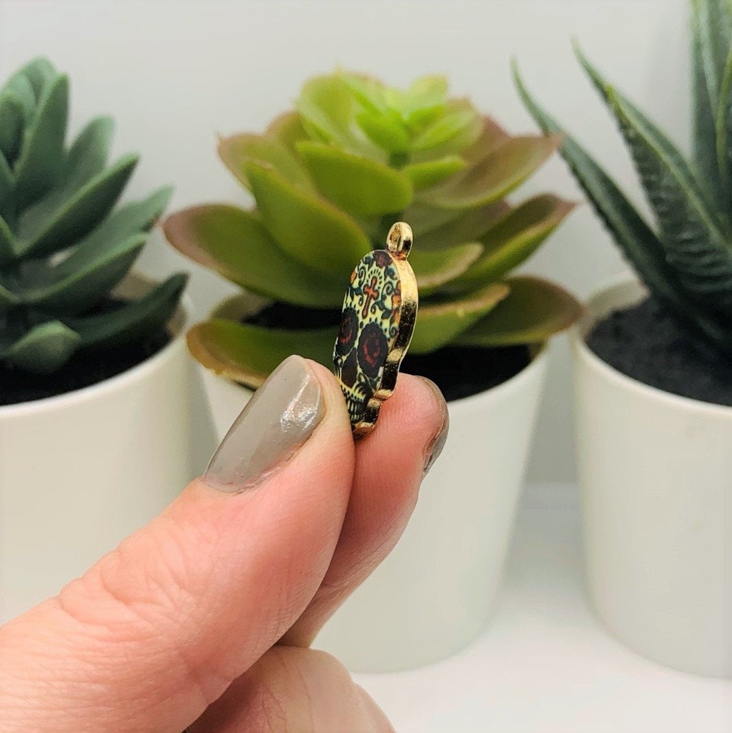 Enamel Sugar Skull Dia De Los Muertos Day or the Dead Charms, 22x12mm