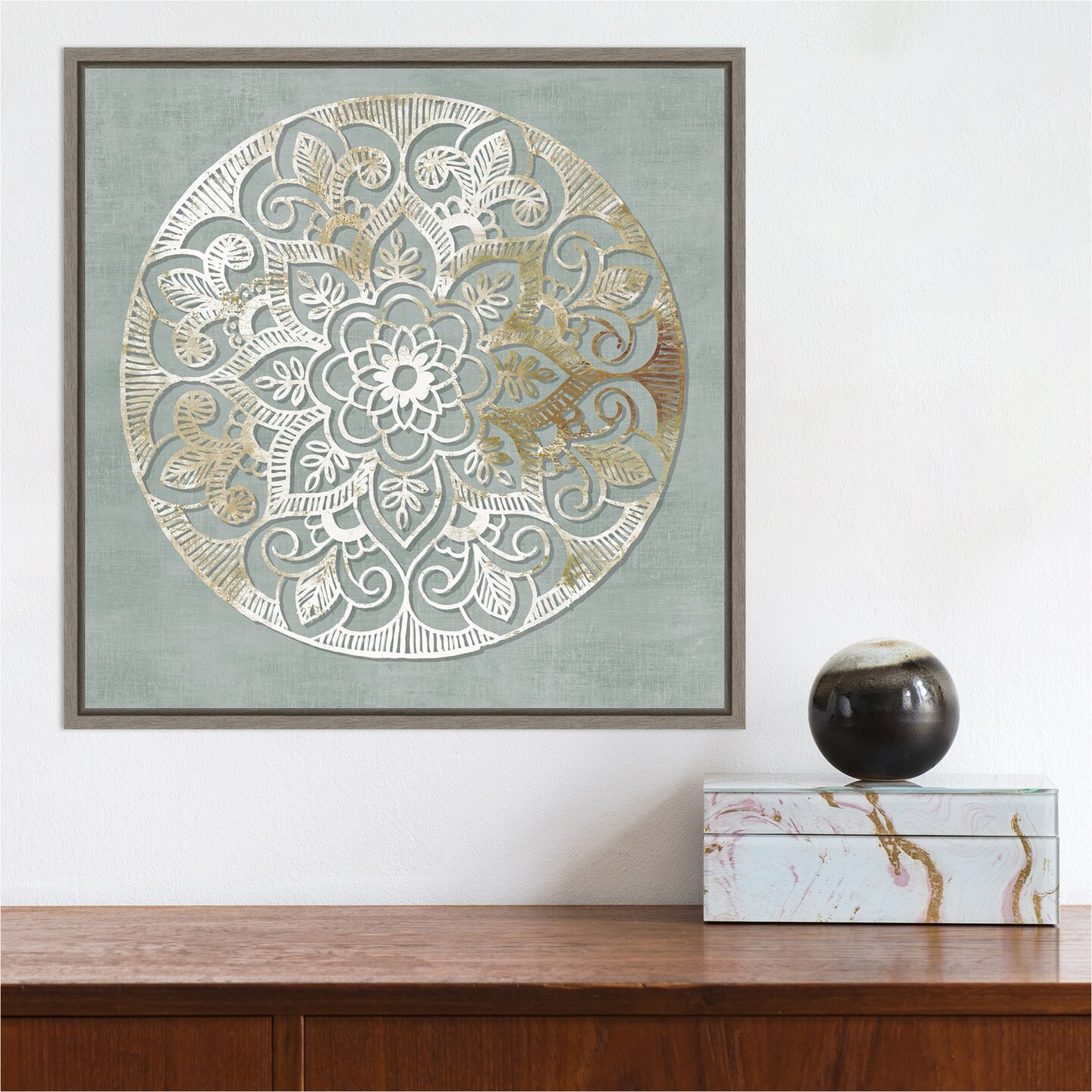 Encore (Mandala) by Aimee Wilson 16-in. W x 16-in. H. Canvas Wall Art Print Framed in Grey