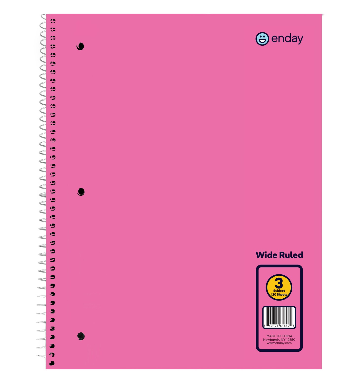 Enday 3-Subject Spiral Notebook Wide Ruled - 120 Sheets