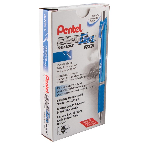 EnerGel RTX Retractable Liquid Gel Pen, (0.5mm) Needle Tip, Fine Line, Blue Ink