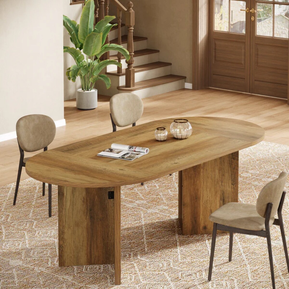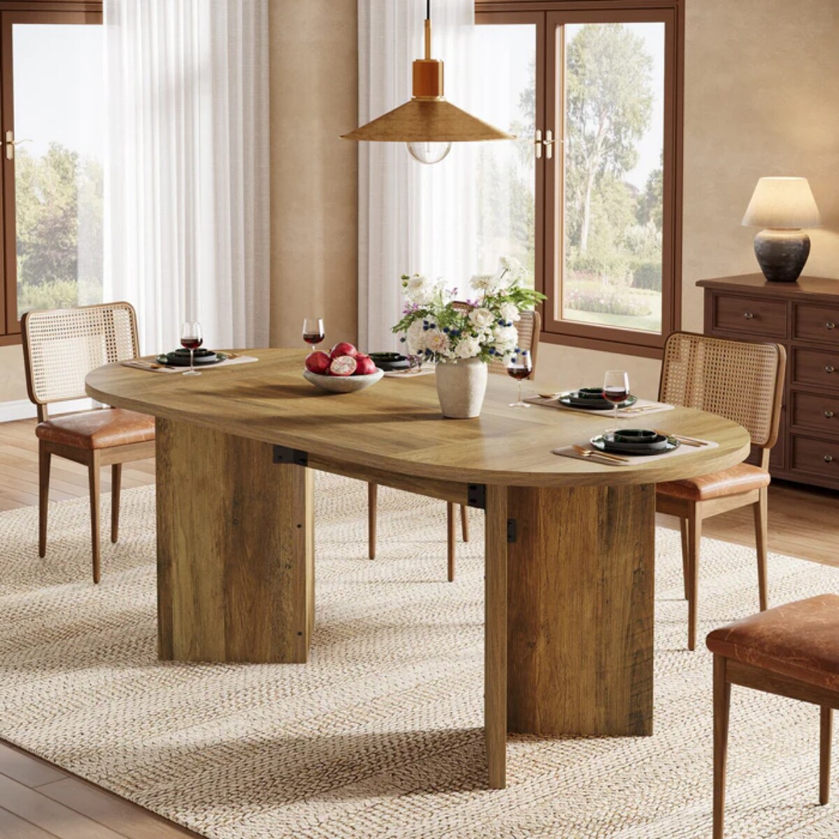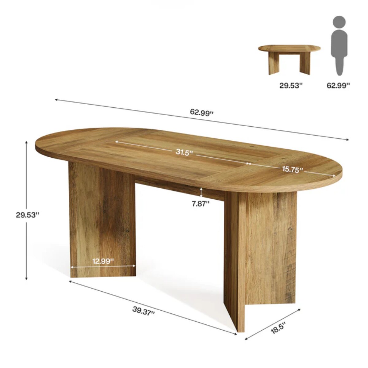 Engineered Wood Farmhouse Table with Metal Base, 63 inches