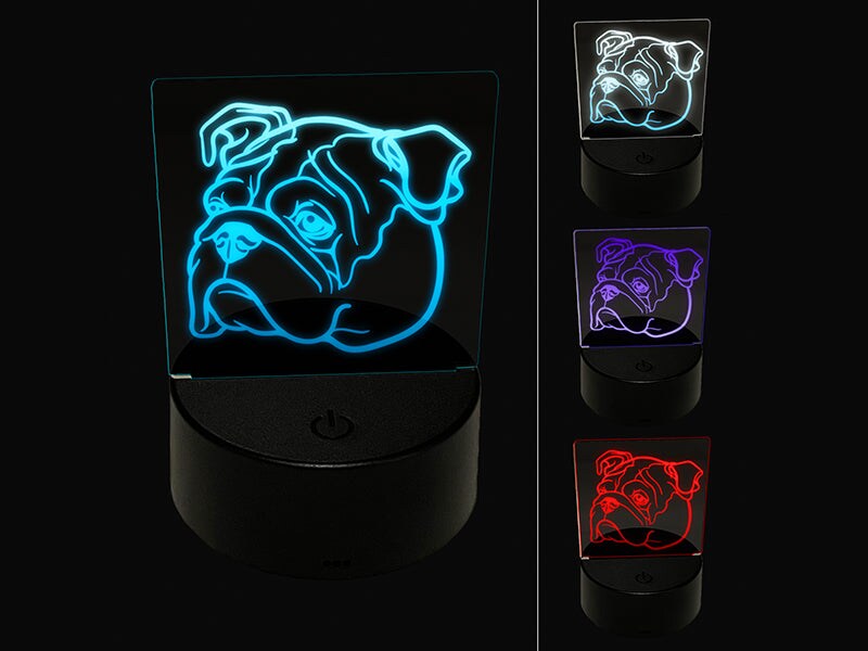 English Bulldog Head 3D Illusion LED Night Light Sign Nightstand Desk Lamp