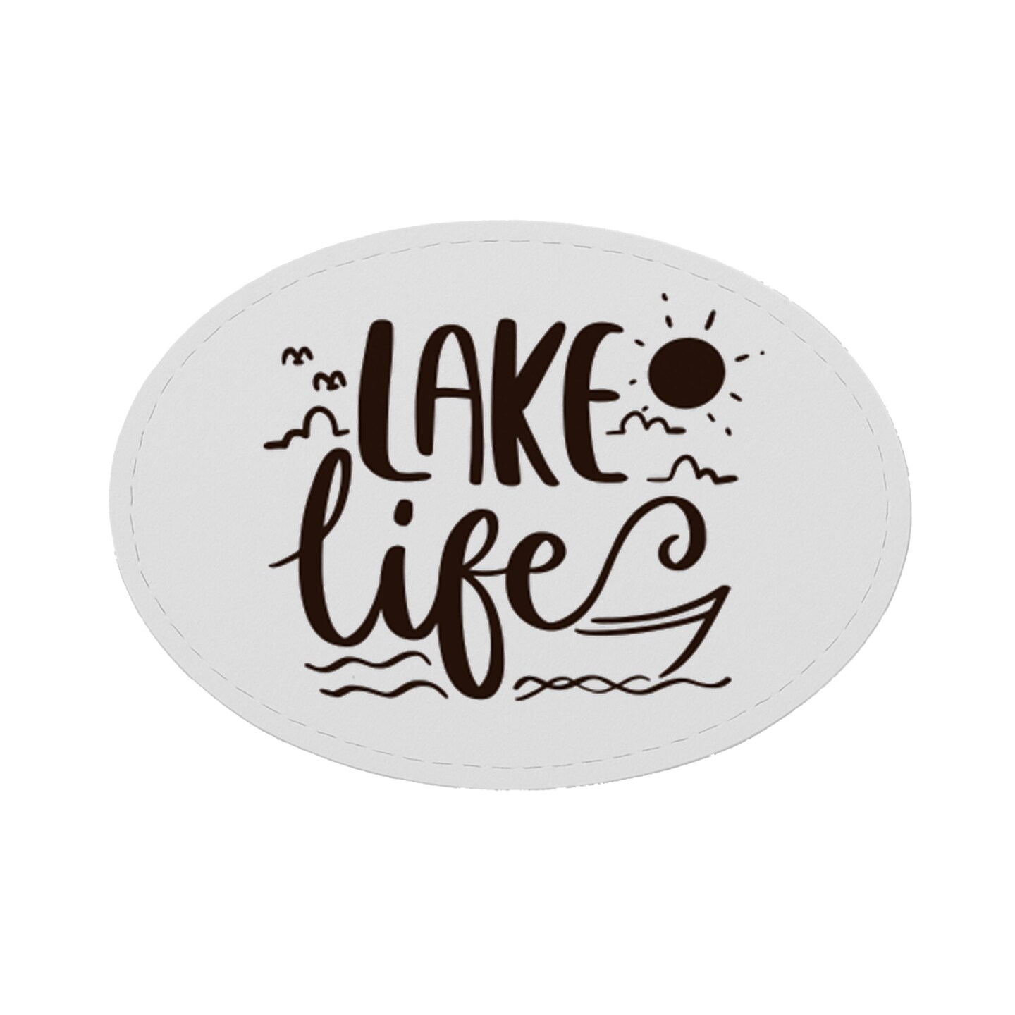 Engravable Leather Patch Blanks for Hats, Jackets & Bags – Laserable Faux Leather Patches with Adhesive & Stitch – Leatherette Apparel Patches (Oval, 5 Pack)