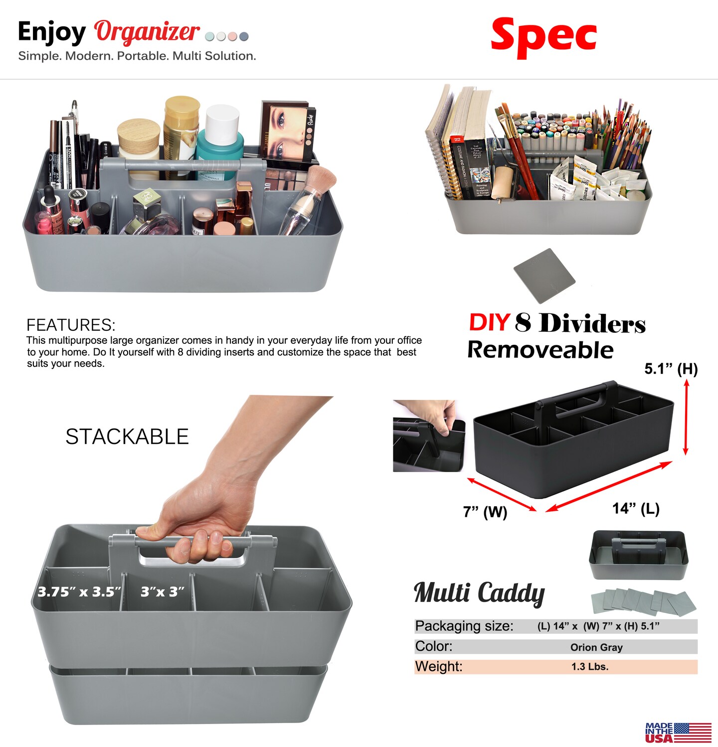 Enjoy Organizer Portable Caddy with Handle – 8-Compartment Storage Bin with Removable Dividers for Office, Crafts, and Home – Made in USA