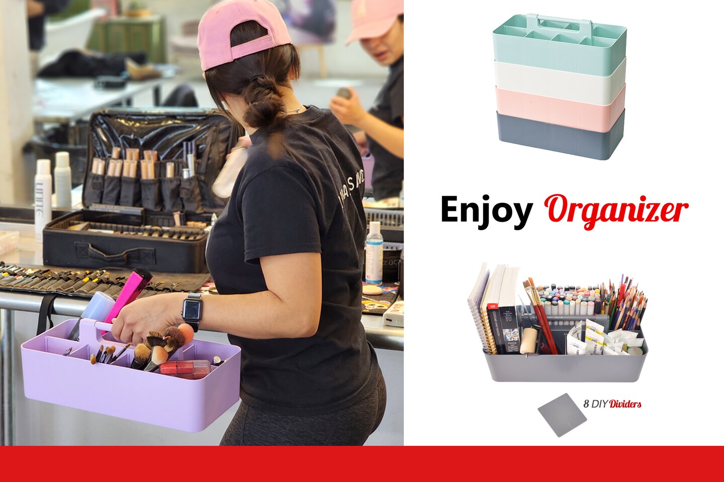 Enjoy Organizer Portable Caddy with Handle – 8-Compartment Storage Bin with Removable Dividers for Office, Crafts, and Home – Made in USA