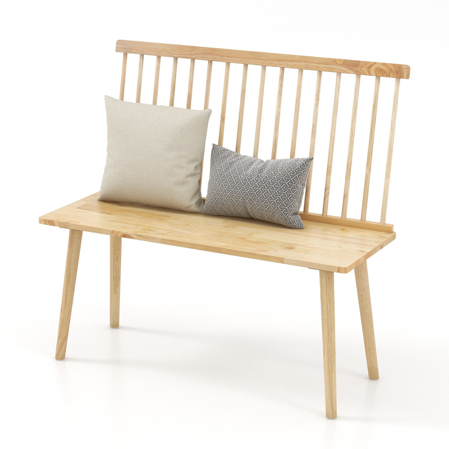 Entryway Bench For 2 With Spindle Back For Kitchen Dining Room Hallway-natural