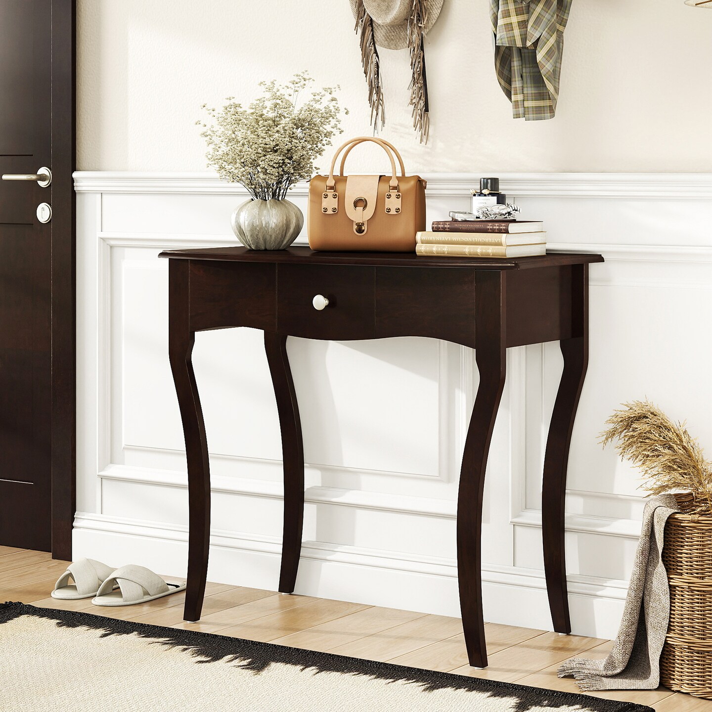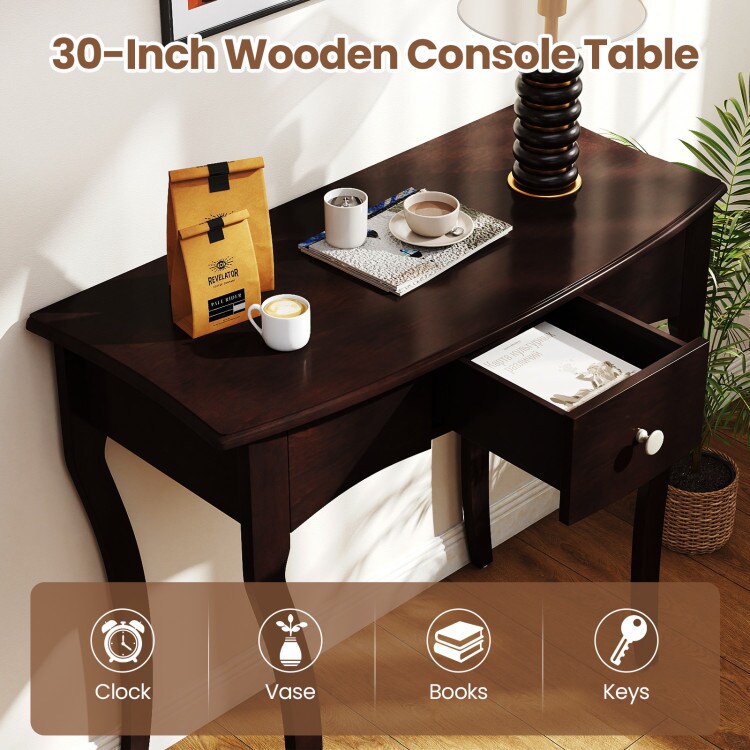 Entryway Console Table with Drawer Solid Pine Wood Frame Sturdy Design
