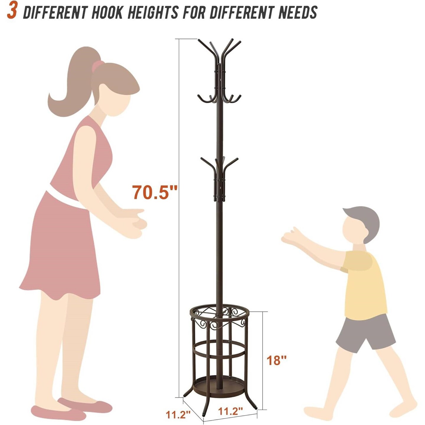 Entryway Hall Tree Coat Rack with Metal Frame and Umbrella Stand