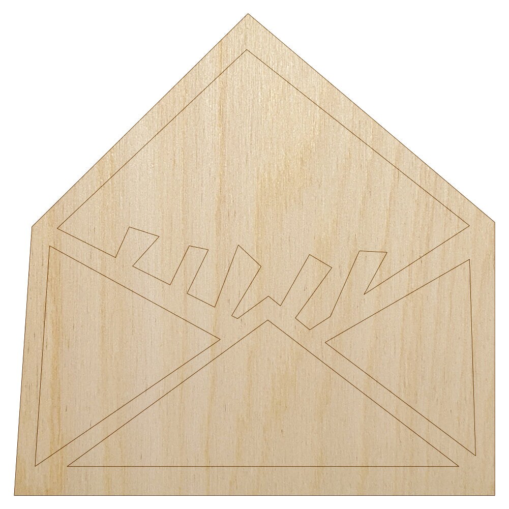Envelope Letter Mail Doodle Unfinished Wood Shape Piece Cutout for DIY Craft Projects