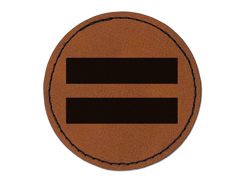 Equal Sign Math Symbol Round Iron-On Engraved Faux Leather Patch Applique - 2.5"
