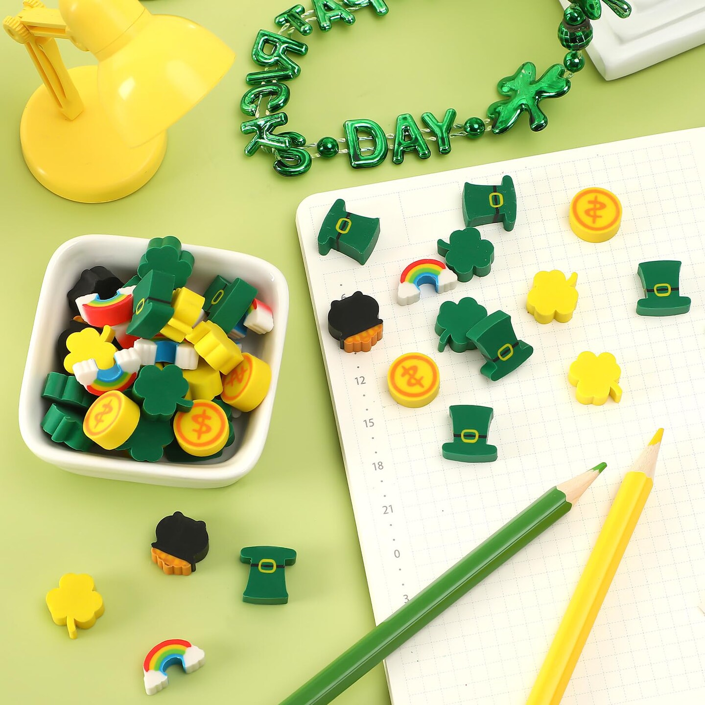 Erasers for Kids, 150Pcs St. Patrick's Mini Erasers Cute Pencil Erasers Shamrocks Erasers for Kids Bulk School Classroom Prizes Homework Rewards Party Favors