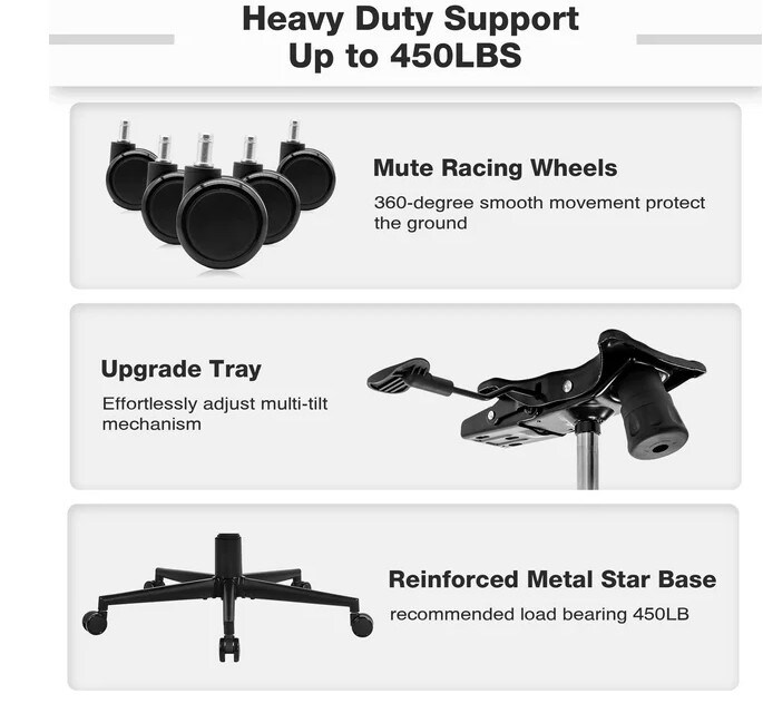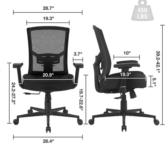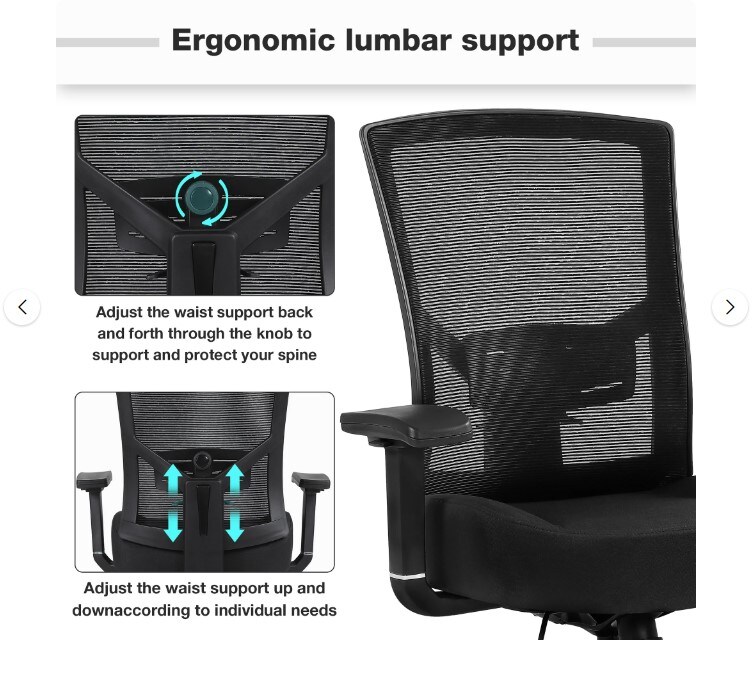 Ergonomic High Back Computer Desk Chair for Heavy People with 2D Adjustable Waist Support and Heavy Duty Metal Base Mesh Chair, Black, Big and Tall Office Chair