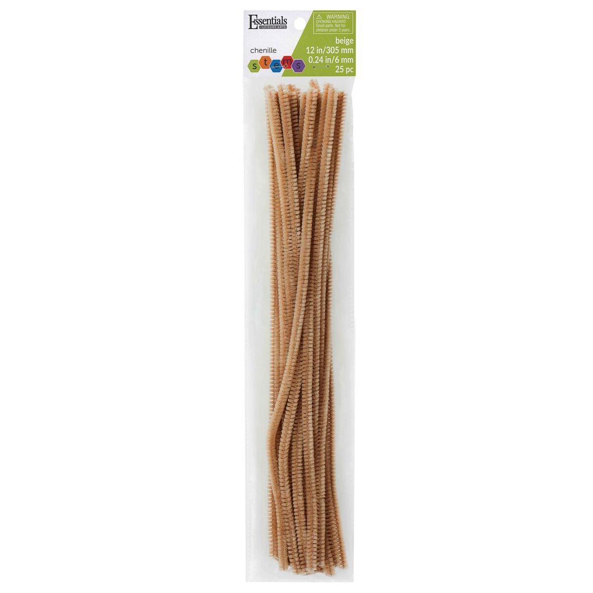 Essentials By Leisure Arts Chenille Stems Beige, 12 Inch 6mm, Bendable Craft Pipe Cleaners for DIY Projects, Dolls, Animals, Ornaments, and Decorations, 25 Pack