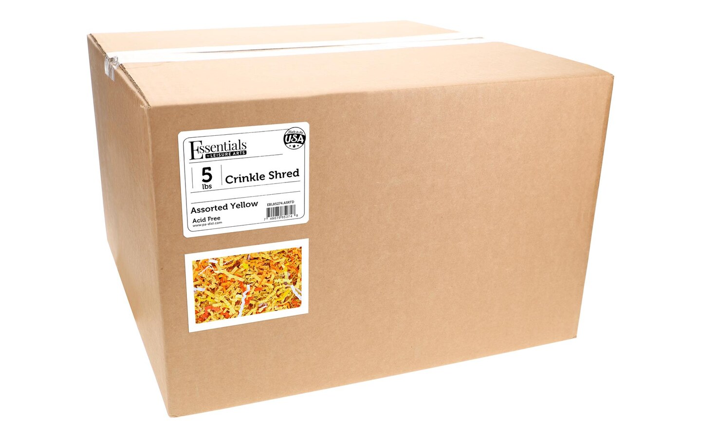 Essentials by Leisure Arts Crinkle Shred Box, Assorted Yellow, 5lbs Shredded Paper Filler, Crinkle Cut Paper Shred Filler, Box Filler, Shredded Paper for Gift Box, Paper Crinkle Filler, Box Filling