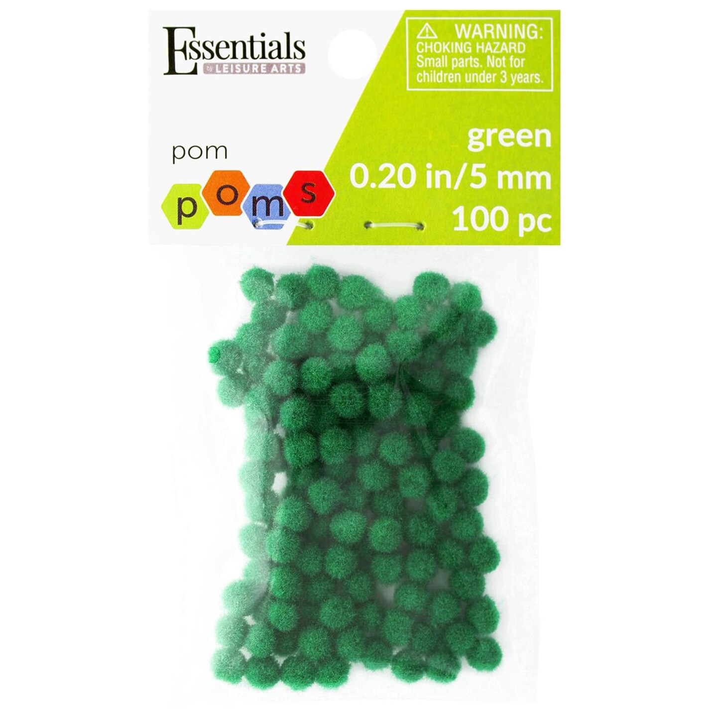 Essentials by Leisure Arts Pom Poms - Green - 5mm - 100 piece pom poms arts and crafts - green pompoms for crafts - craft pom poms - puff balls for crafts
