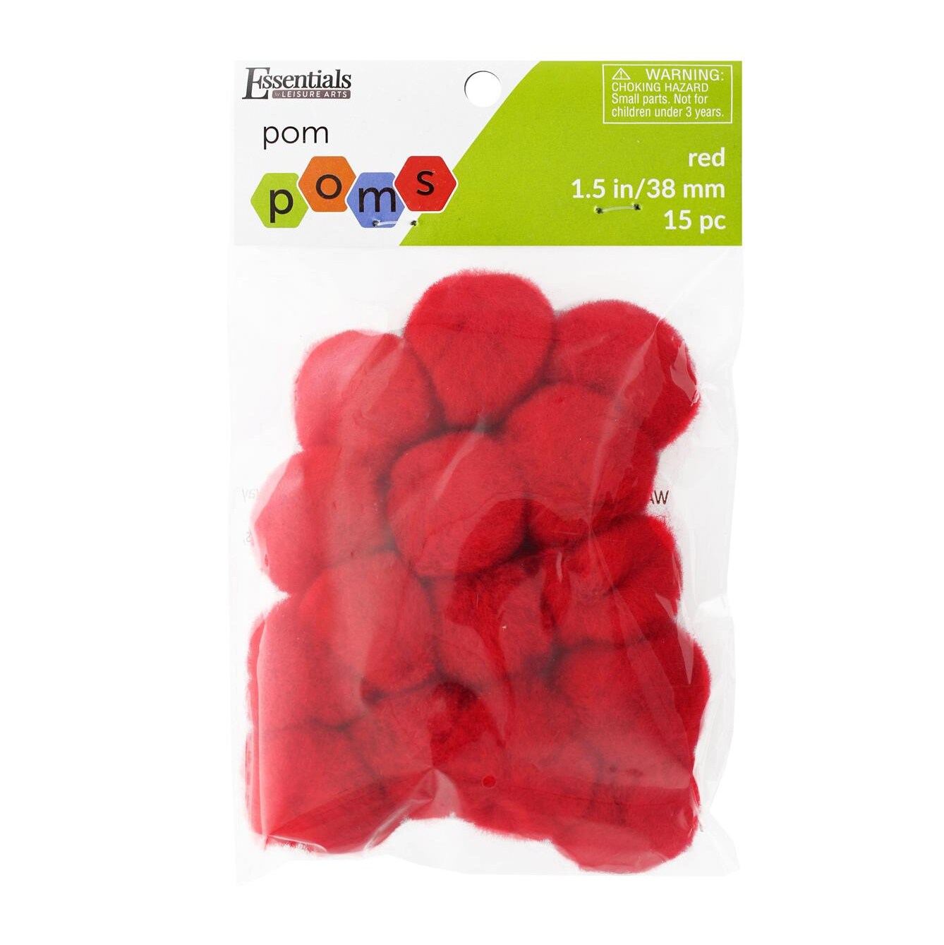 Essentials By Leisure Arts Pom Poms, Red, 1.5", 15 Pieces Per Pack