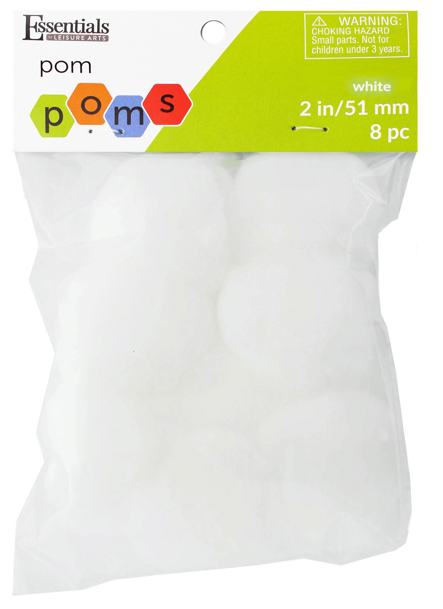 Essentials by Leisure Arts Pom Poms, White -2", 8 Pieces per Pack