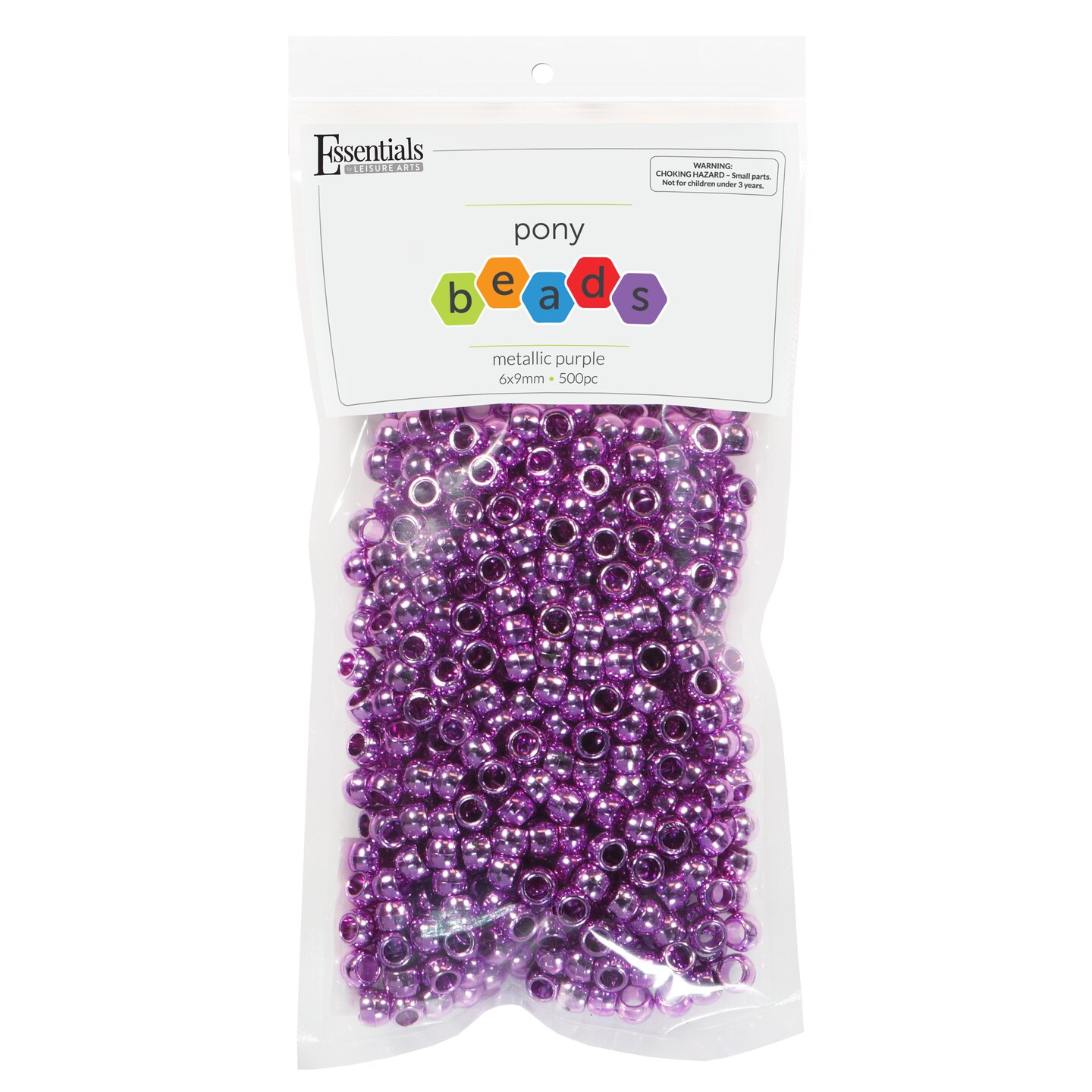 Essentials by Leisure Arts Pony Bead 6mm x 9mm Metallic Purple Opaque Plastic Pony Beads Bulk 500 pieces for Arts, Crafts, Bracelet, Necklace, Jewelry Making, Earring, Hair Braiding