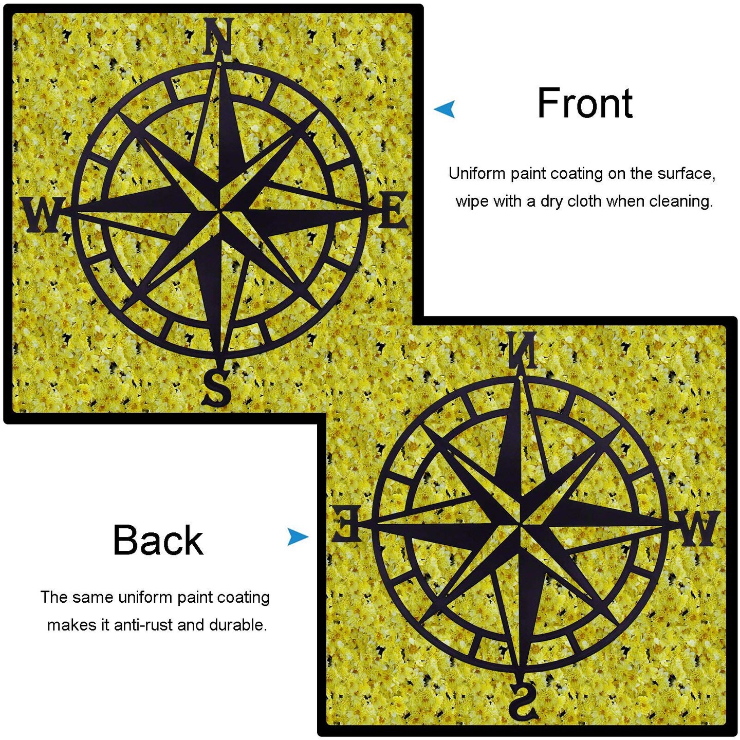 ESTART 11 Inches Metal Decorative Nautical Compass Wall Decor, Living Room Bedroom Office Porch Garden Patio Signs Wall Hanging Art Beach Theme Home Decoration (Black)