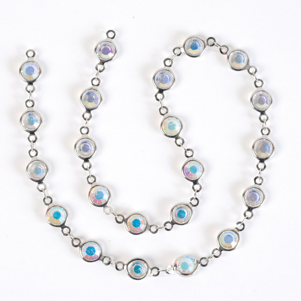 Estrellaª Linked Crystals Chain - Medium, Crystal Aurora/Silver