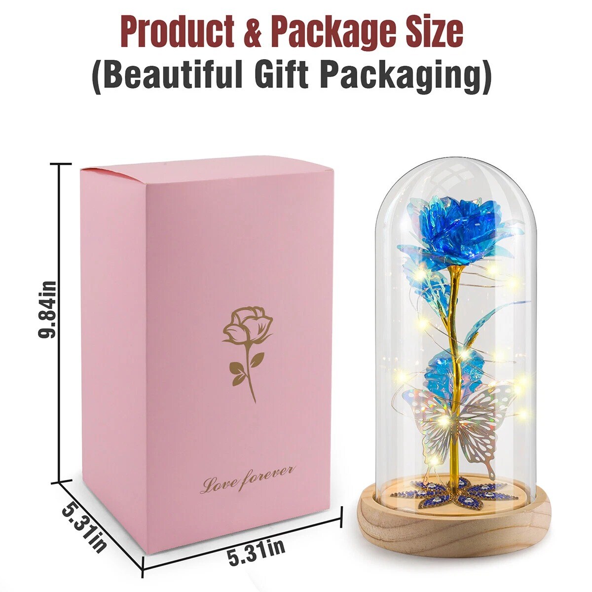 Eternal Preserved LED Rose with Butterfly in Glass Dome Décor