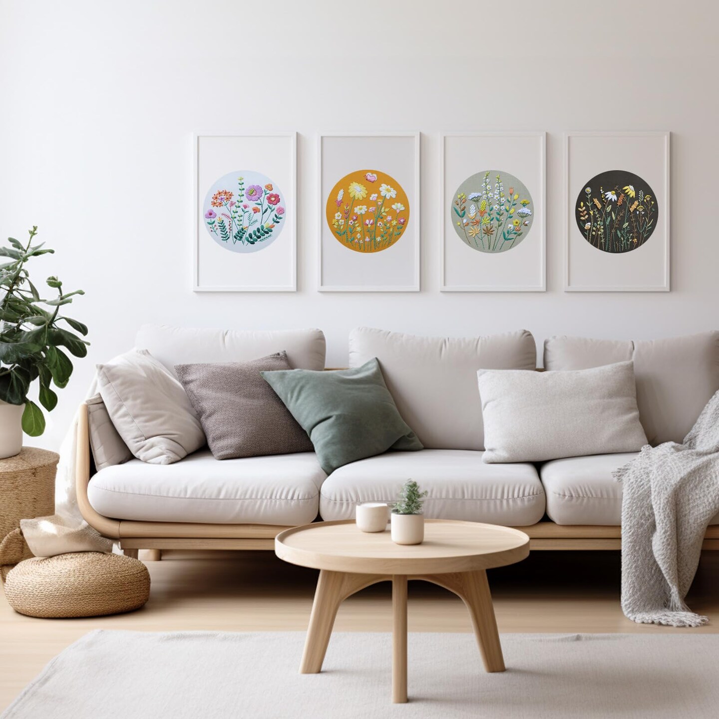 ETSPIL Embroidery Kit for Adults & Teens, 4-Pack Floral Samplers, 2 Adjustable Hoops, Pre-Printed Fabric, 17 Vibrant Threads, 16 Needles, Beginner-Friendly Stitch Guide & Video, DIY Craft Gift