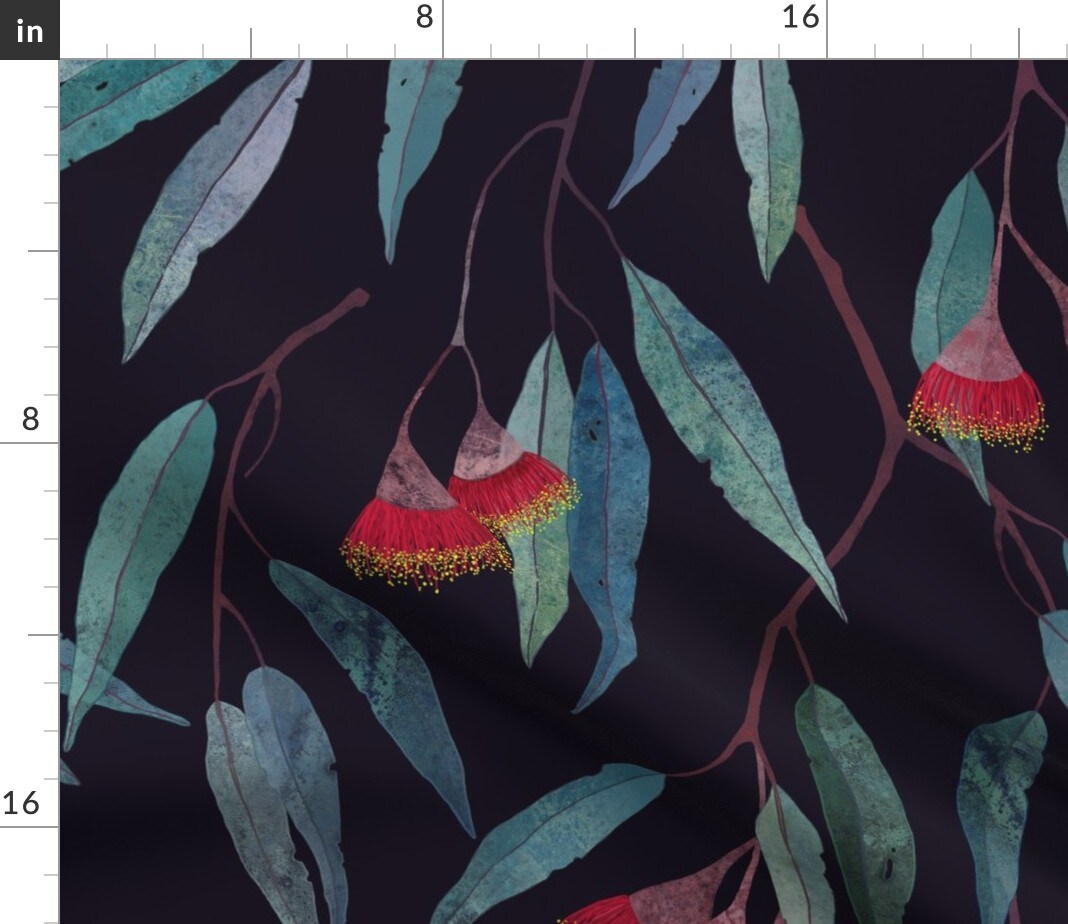 Eucalyptus Leaves Flowers Flower Japanese Botanical Tropical Plants Watercolor Print Modern Home Decor Custom Printed Fabric by Spoonflower Various Fabrics by the Yard or Fat Quarter