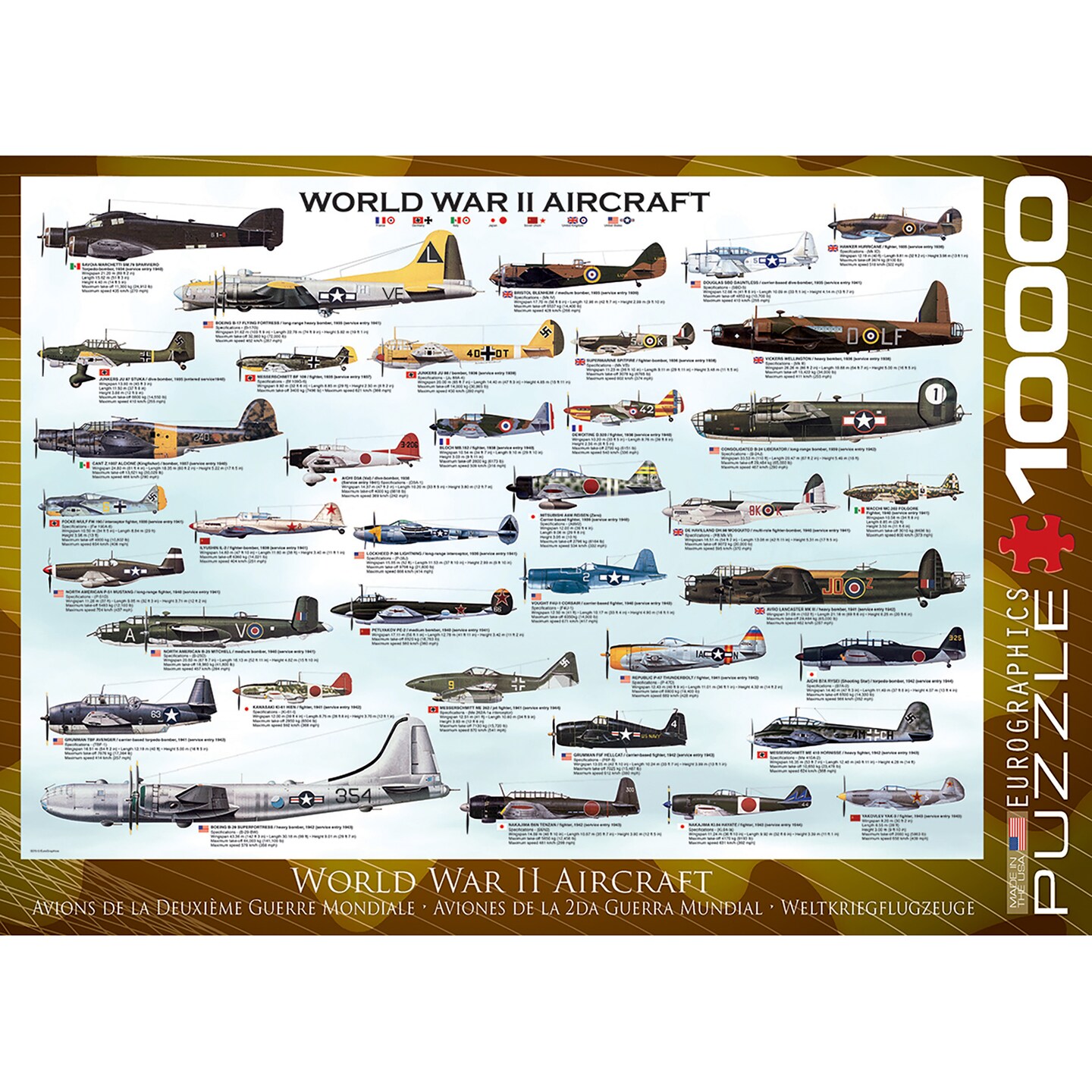 Eurographics: World War II Aircraft - 1000 Piece Puzzle, Adult Jigsaw, 19.25x26.6" Assembled, Iconic Historical Planes, High-Quality Recycled Material