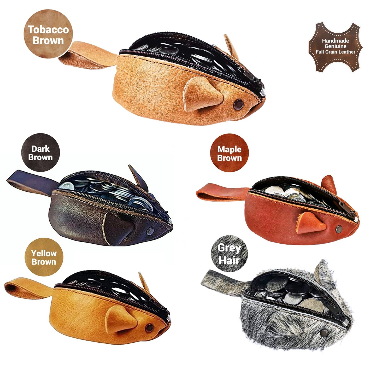 European Leather Works Mouse Coin Purse, Handmade Genuine Full Grain Leather with Rustic Cute Design, Perfect gift, Change Pouch Wallet