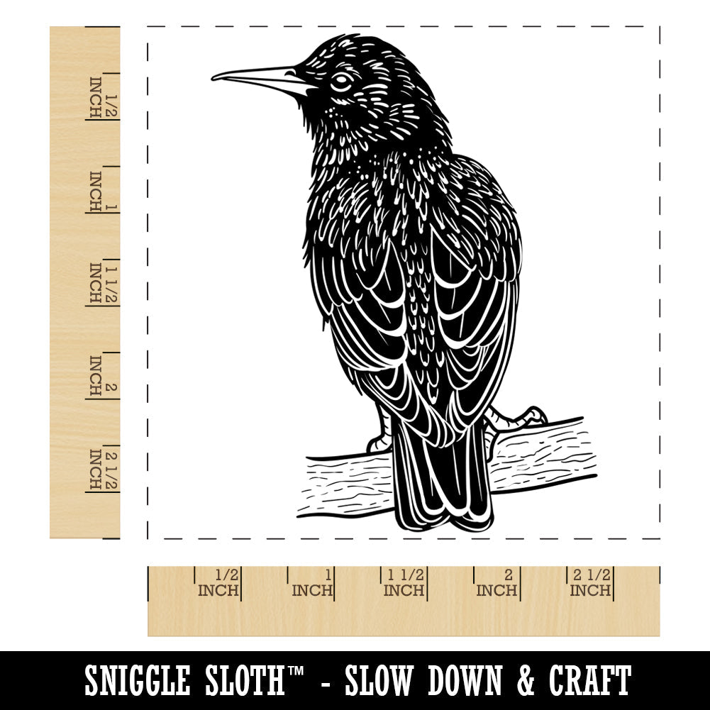European Starling Bird on Branch Square Rubber Stamp for Stamping Crafting