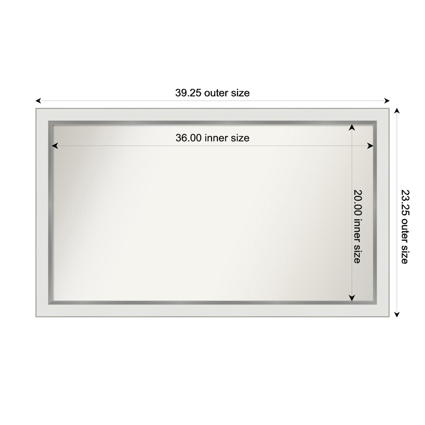 Eva White Silver Narrow Non-Beveled Custom Framed Bathroom Vanity Wall Mirror