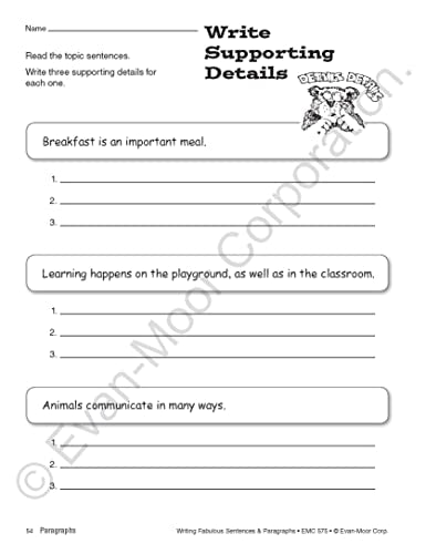 Evan-Moor Writing Fabulous Sentences & Paragraphs, Grades 4-6, Homeschool & Classroom Workbook, Activities, Main Ideas, Topic Sentences, Figurative Language, Descriptive Details, Writing Skills
