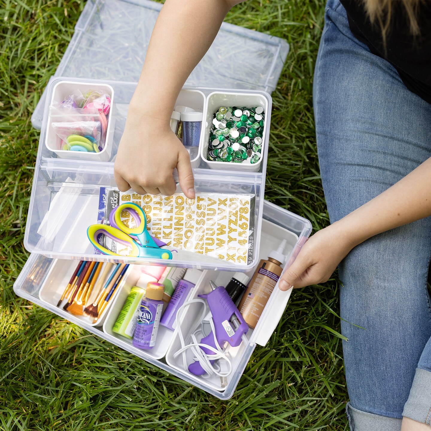 Everything Mary 7-Piece Clear Plastic Craft & Hobby Storage Container – Organizer with Removable Bins for Supplies, Tools, and DIY Projects