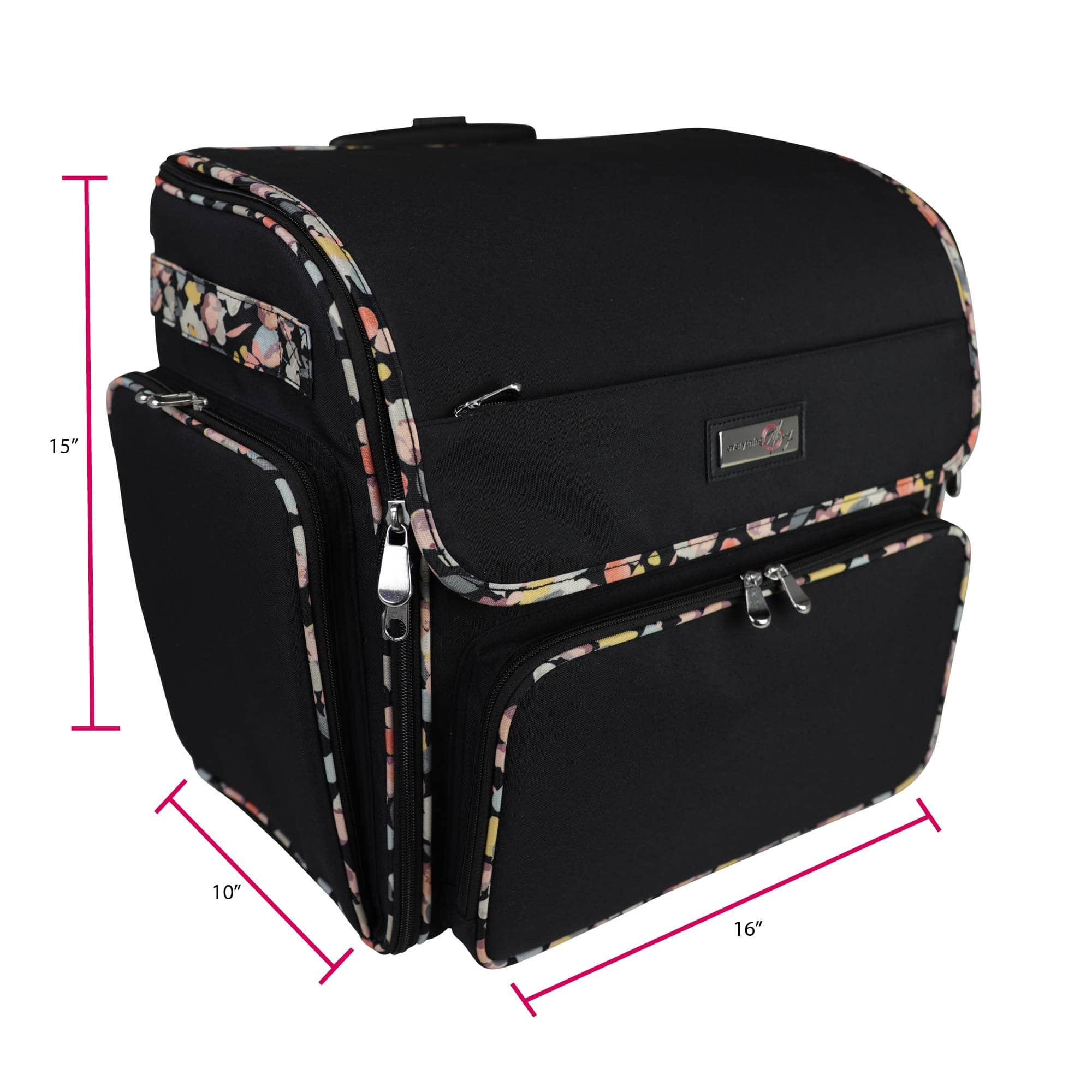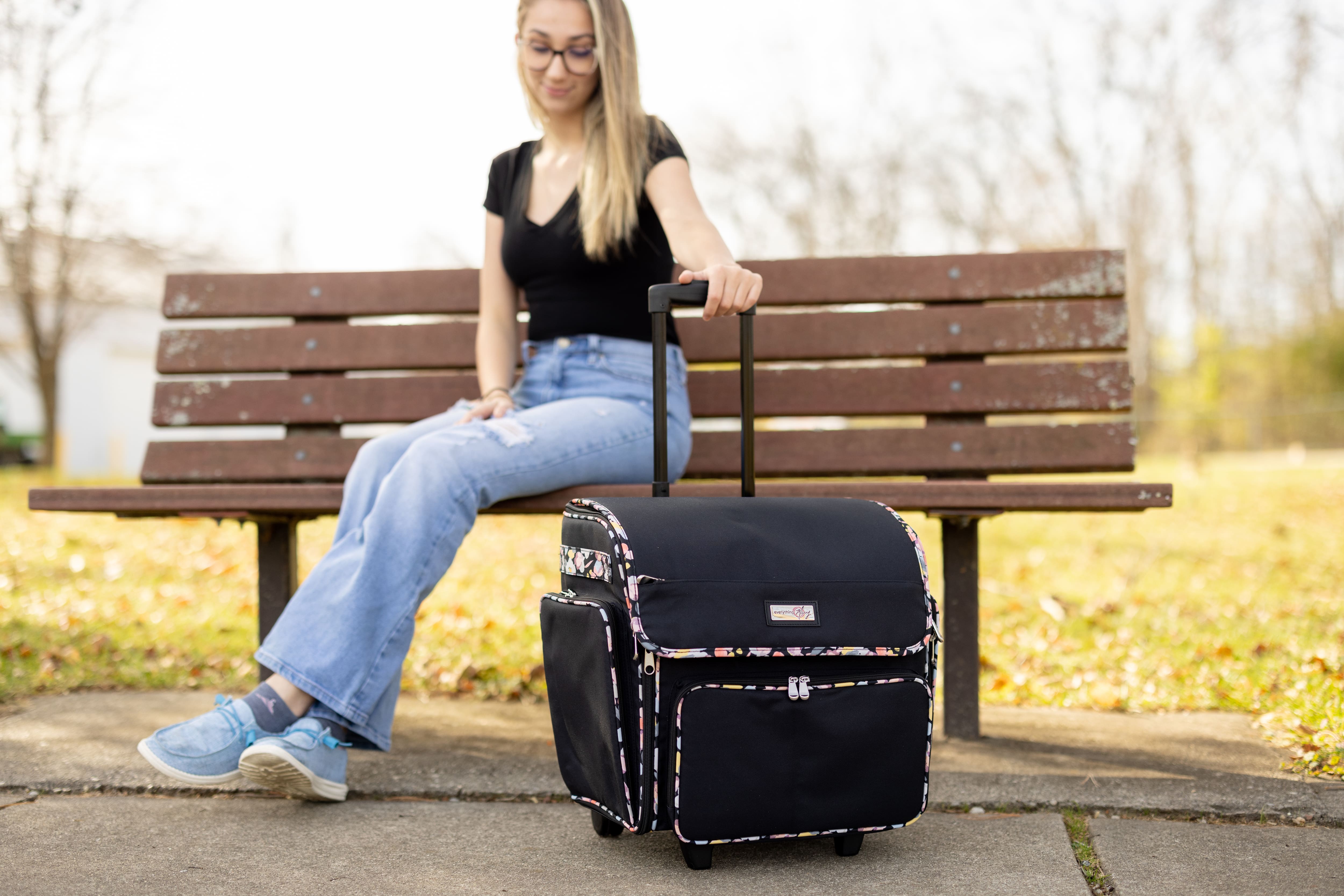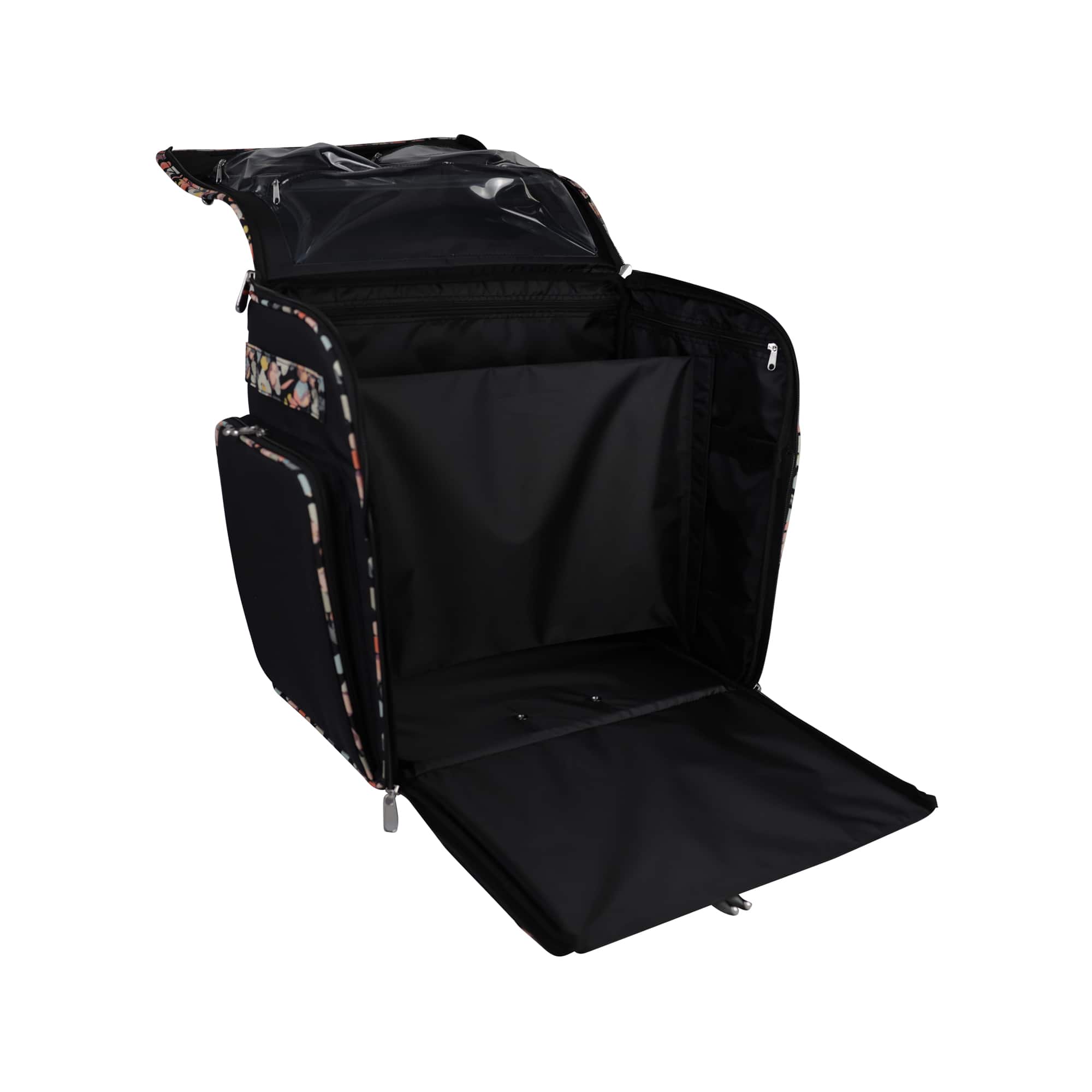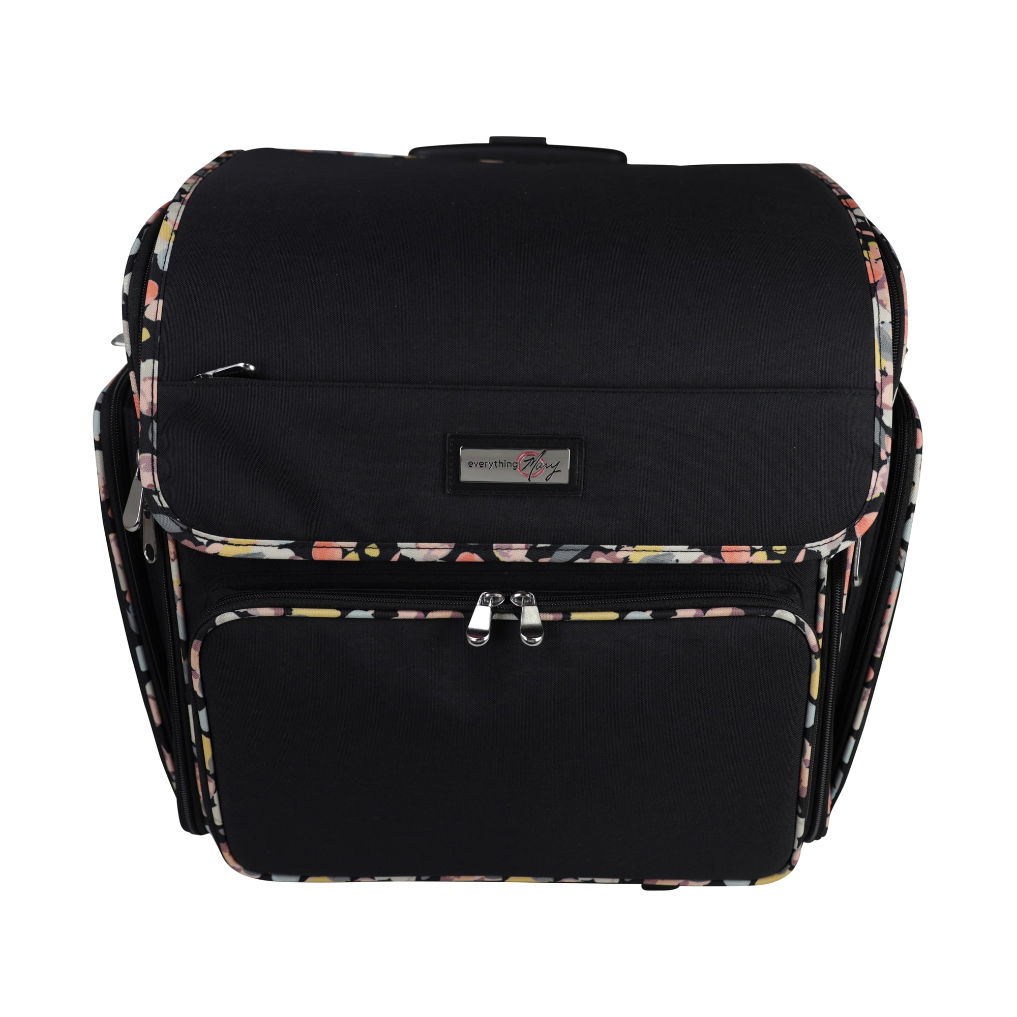Everything Mary Black Floral Deluxe Collapsible Rolling Craft Bag