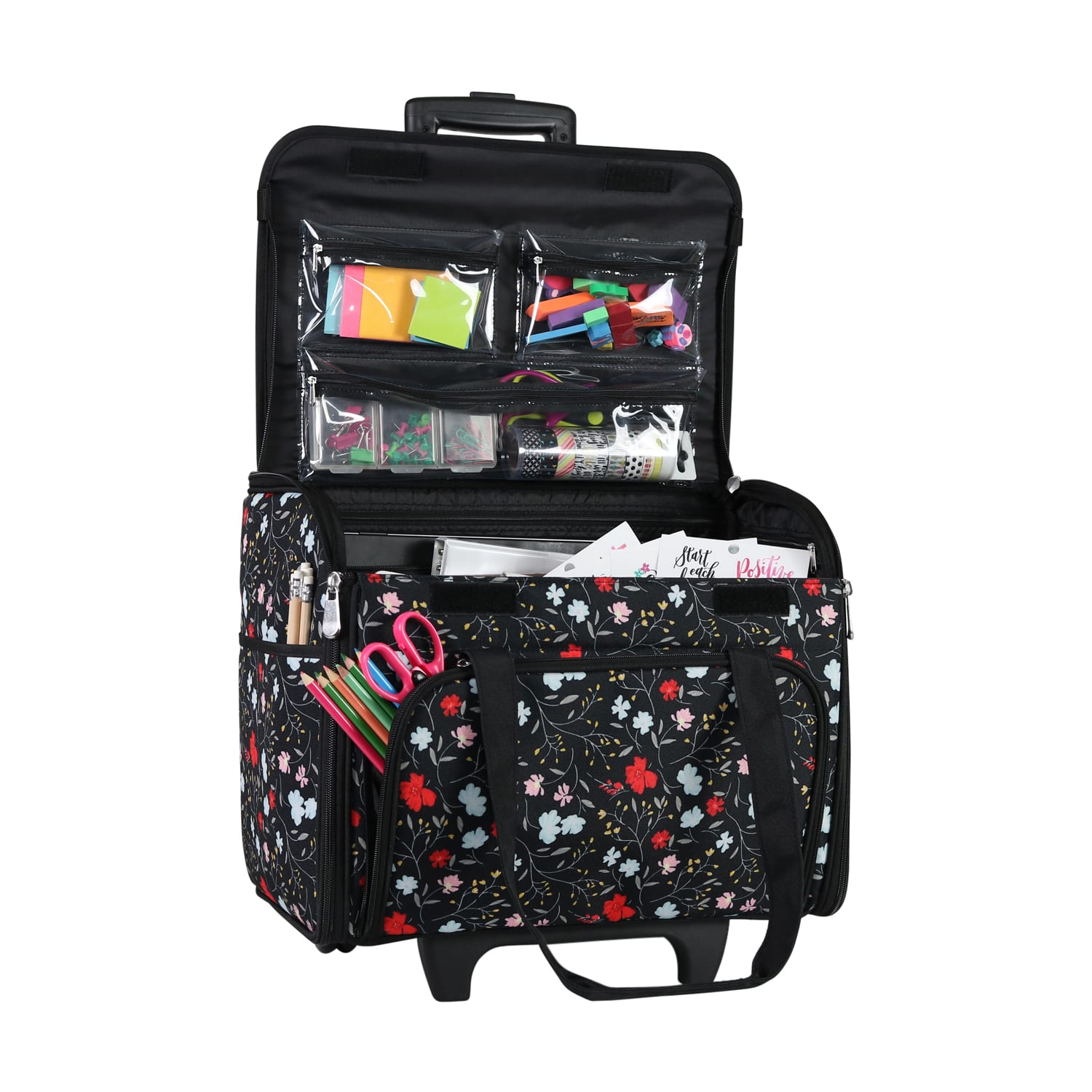 Everything Mary Black Floral Teacher Rolling Tote