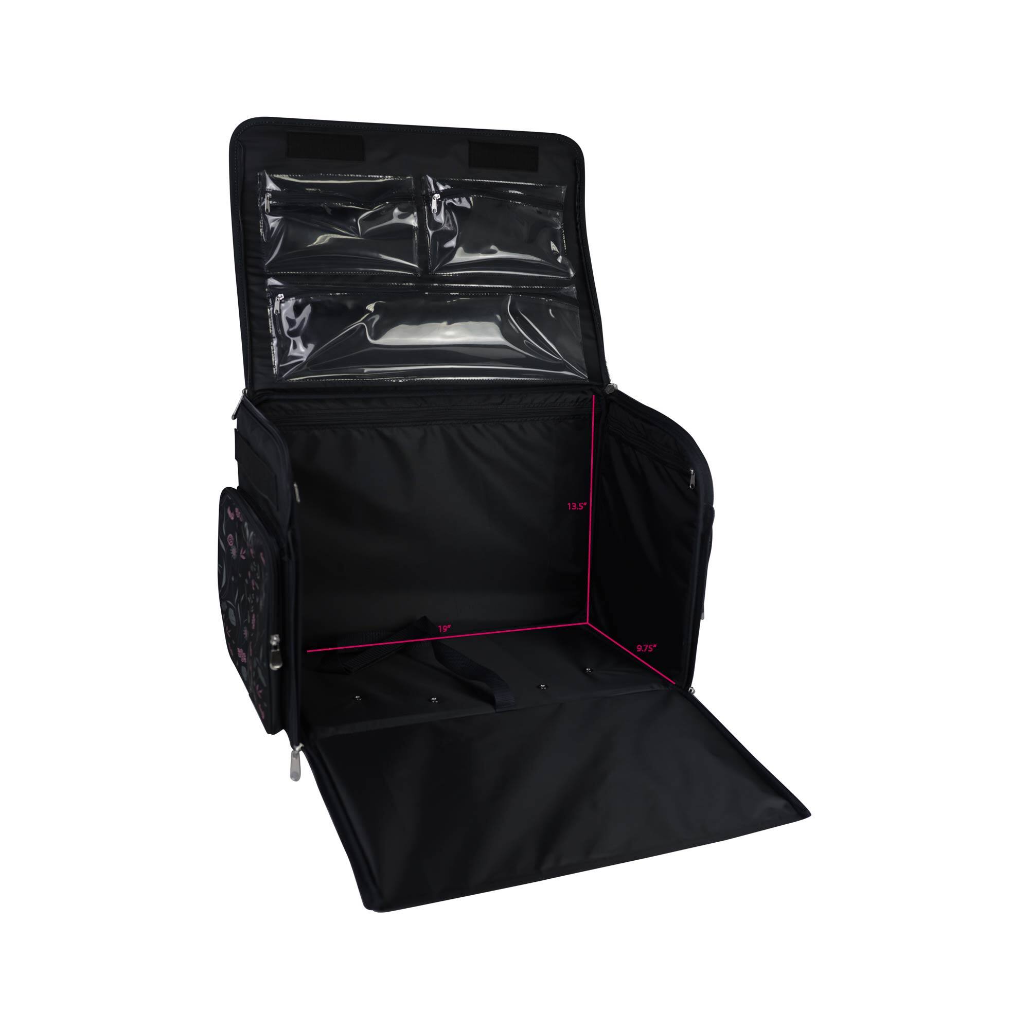 Everything Mary Pink & Gray Floral 4 Wheel Collapsible Deluxe Sewing Machine Storage Case