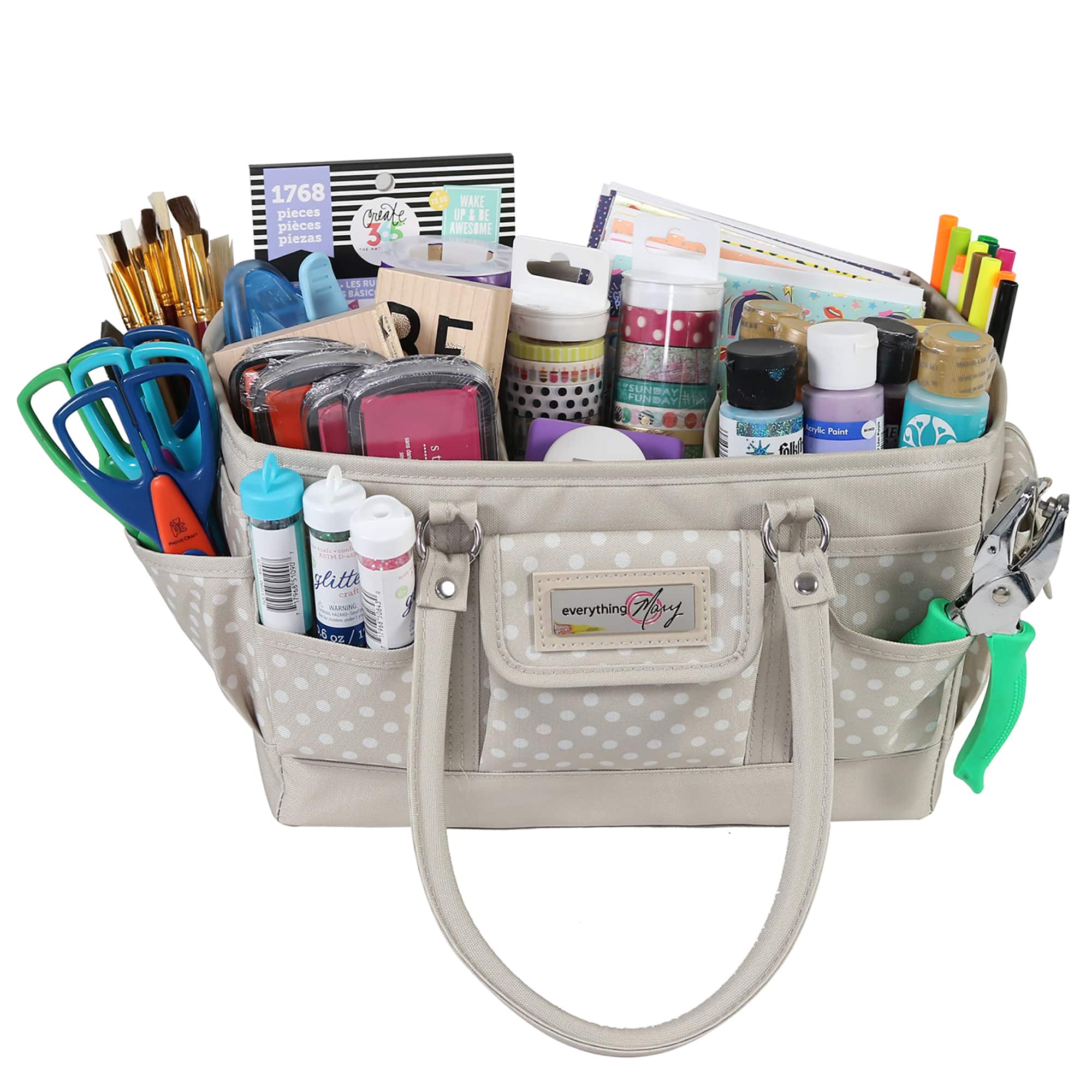 Everything Mary Tan Dot Deluxe Store & Tote Craft Organizer