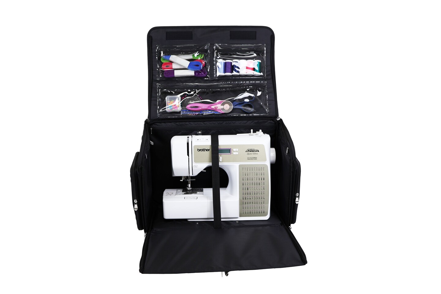 Everything Mary XL 4 Wheel Collapsible Rolling Sewing Machine Storage Case, Black
