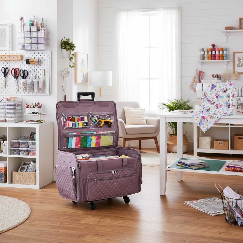 Everything Mary XXL 4 Wheel Collapsible Rolling Sewing Machine Storage Case, Purple Quilted