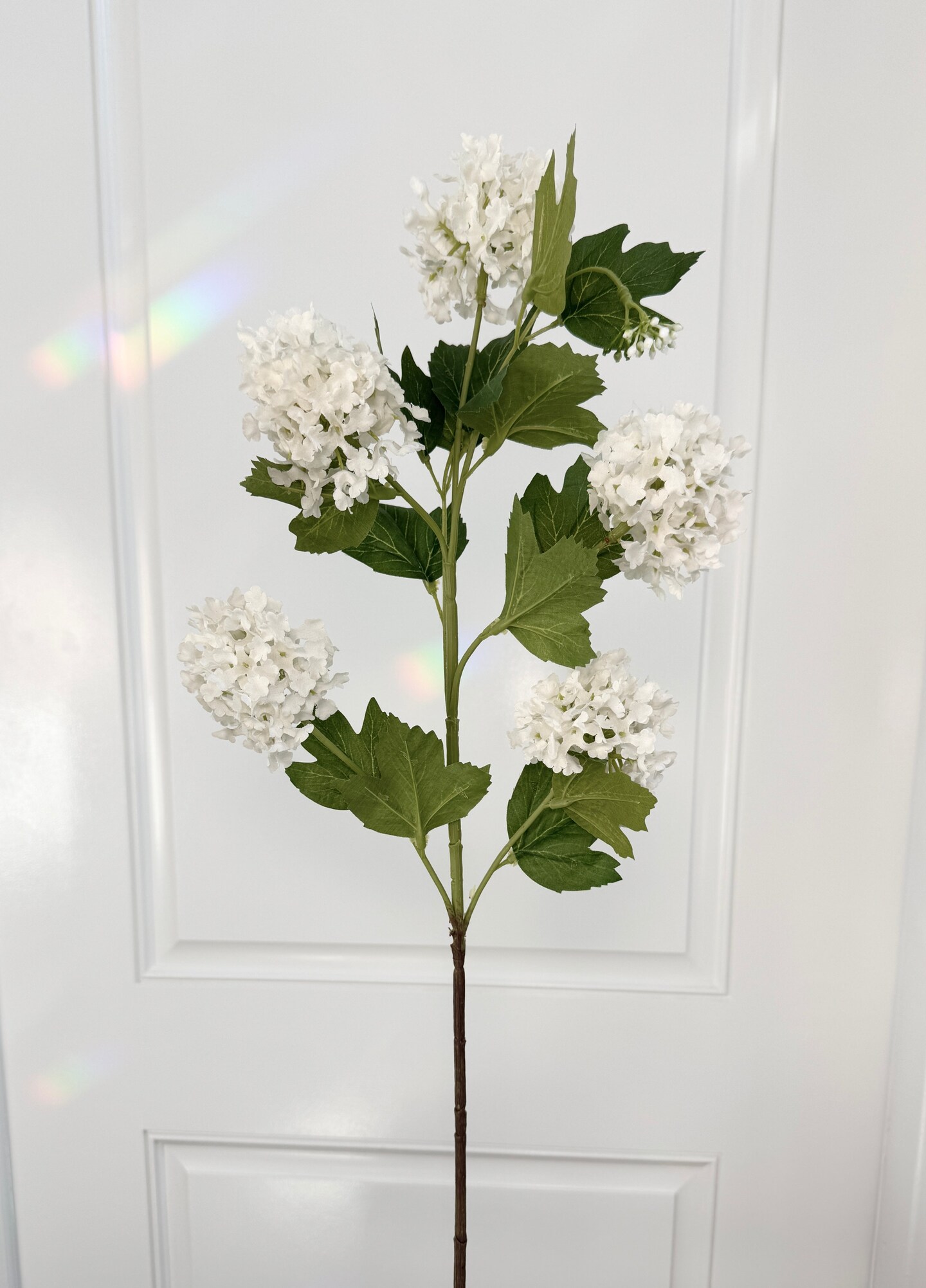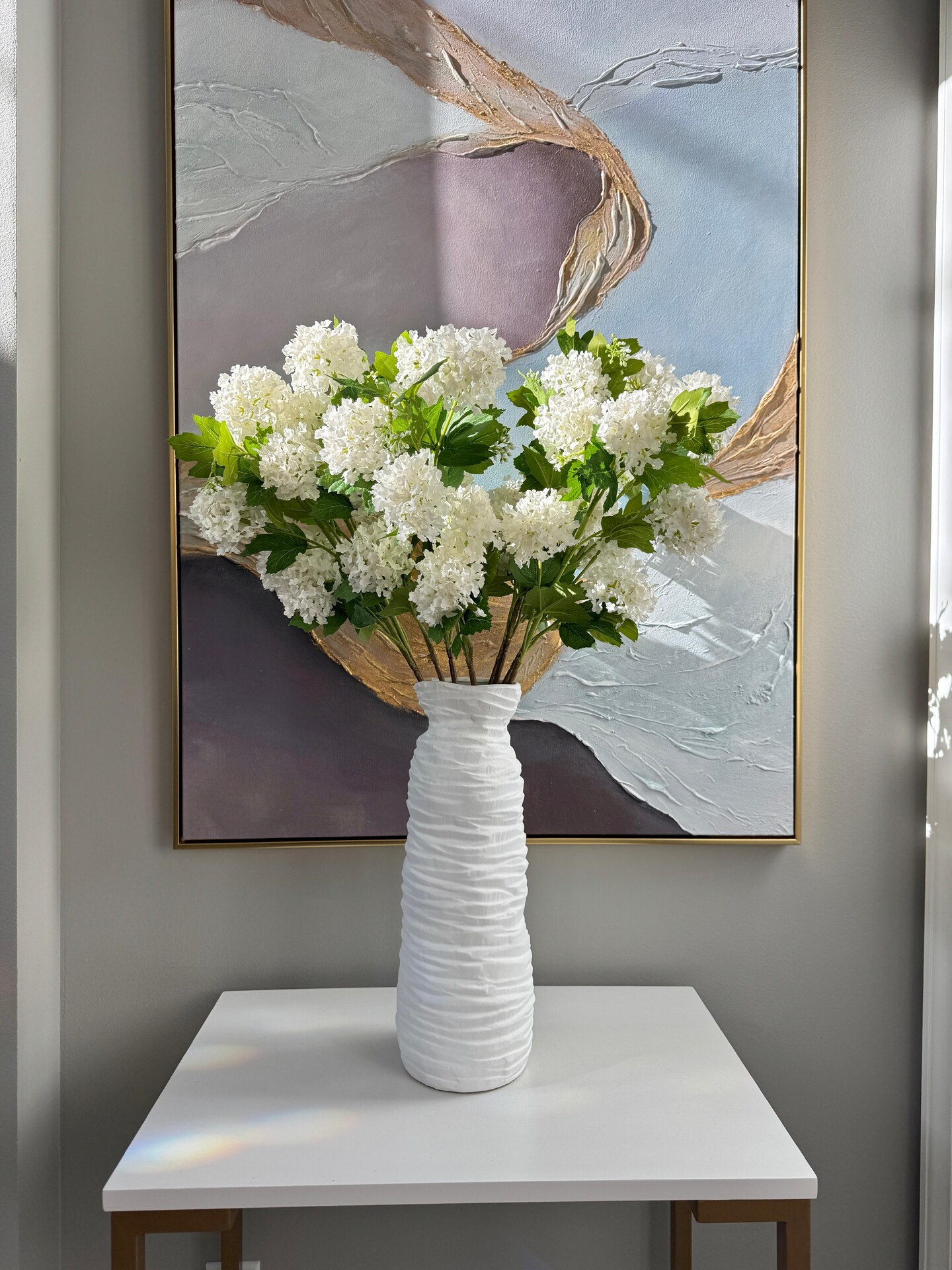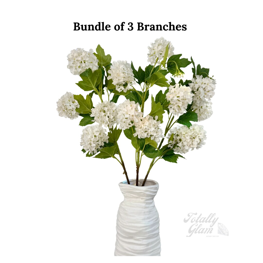Evie Faux Snowball Hydrangea Spray, 30” White Artificial Flower Stems Set of 3 Realistic Silk Floral Decor