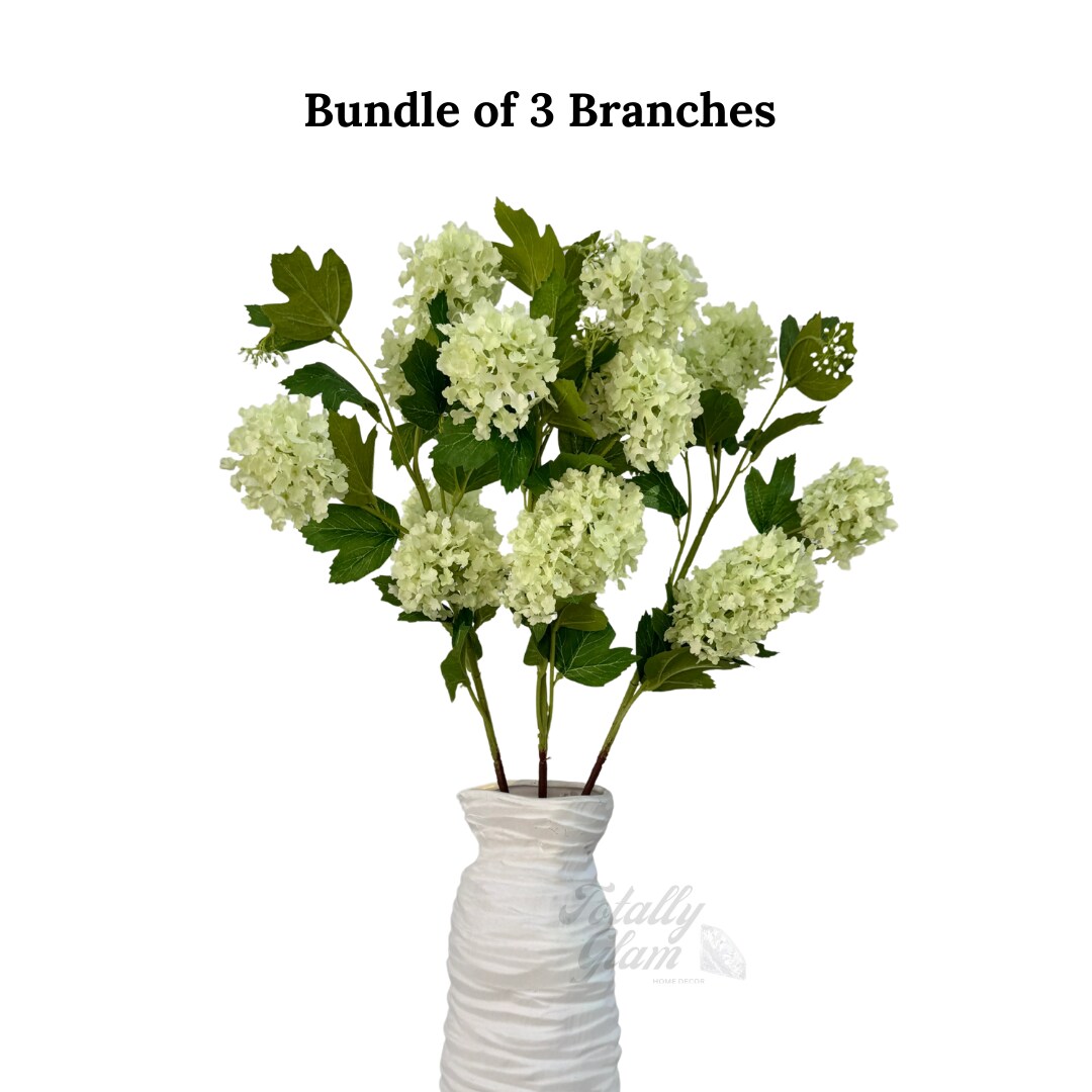 Evie Faux Vibrant Green Hydrangea Spray, 30” Artificial Flower Stems Set of 3 Realistic Silk Floral Decor
