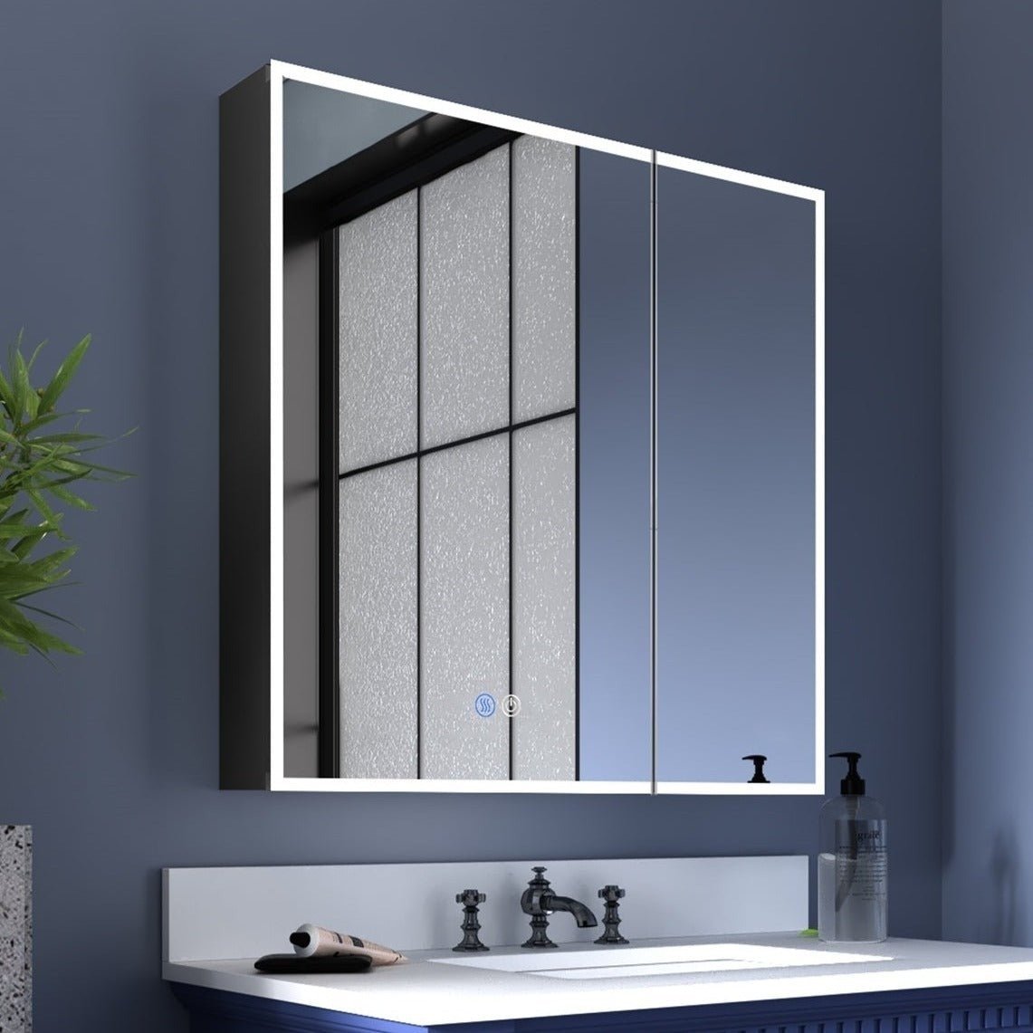 ExBriteUSA ExBrite 32" W x 30" H LED Lighted Medicine Cabinet with Mirror for Bathroom Double Door Surface Wall Mount Flip-Out