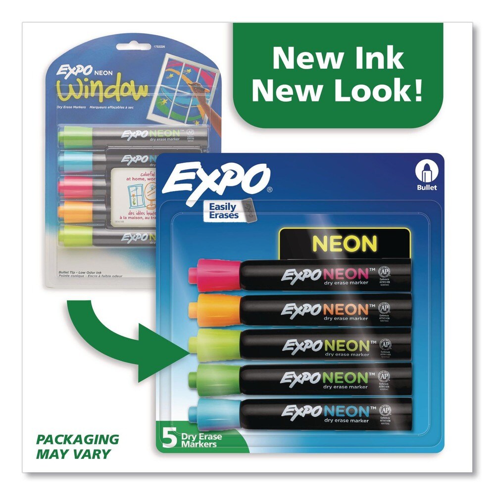 EXPO Broad Bullet Tip Neon Windows Dry Erase Marker - Assorted Colors (5/Set)