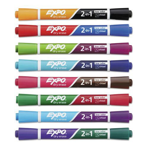 EXPO Fine/Broad Chisel Tips 2-in-1 Dry Erase Markers - Assorted Colors (8/Pack)