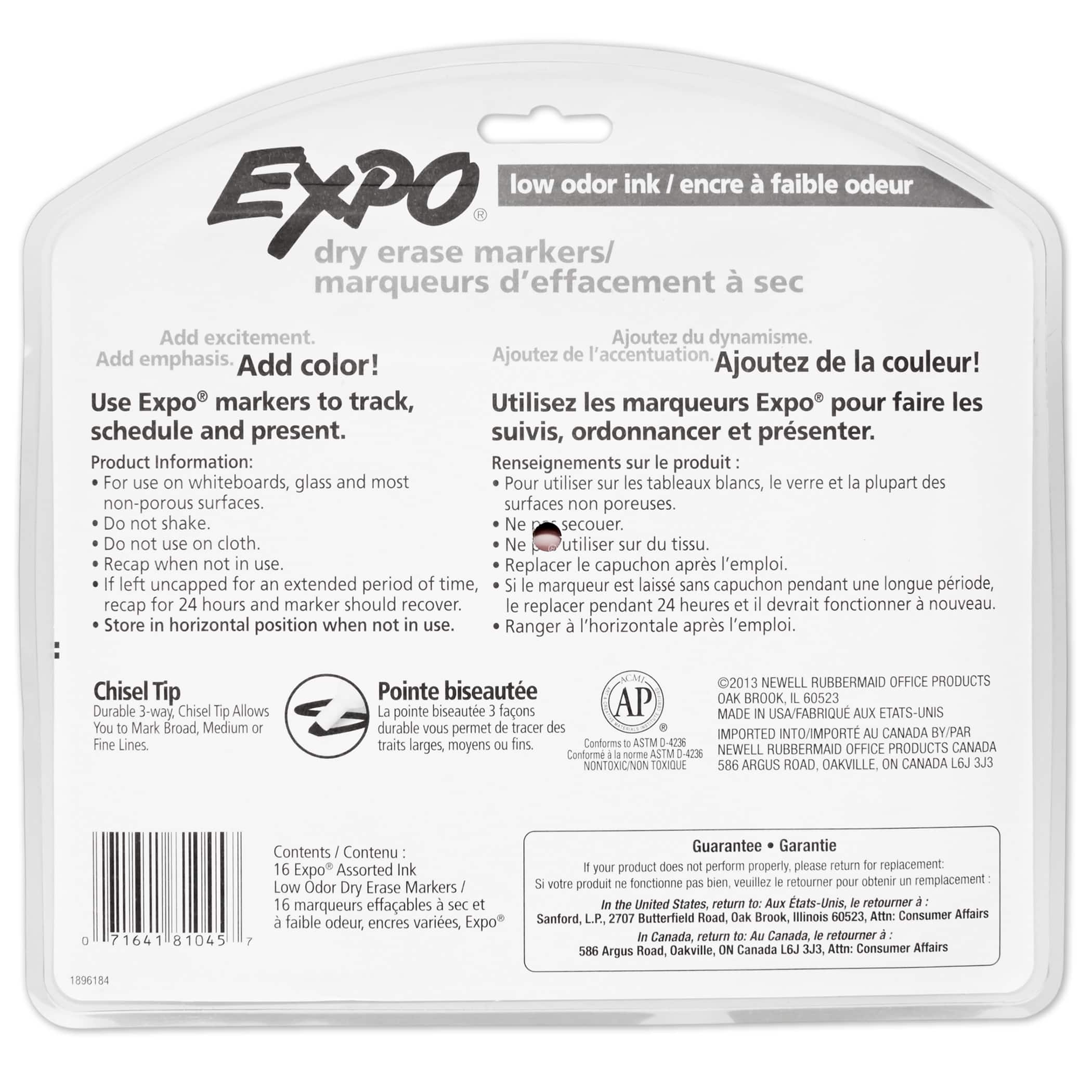 Expo® Low Odor Dry Erase Marker, Chisel Tip, Assorted, 16 Set