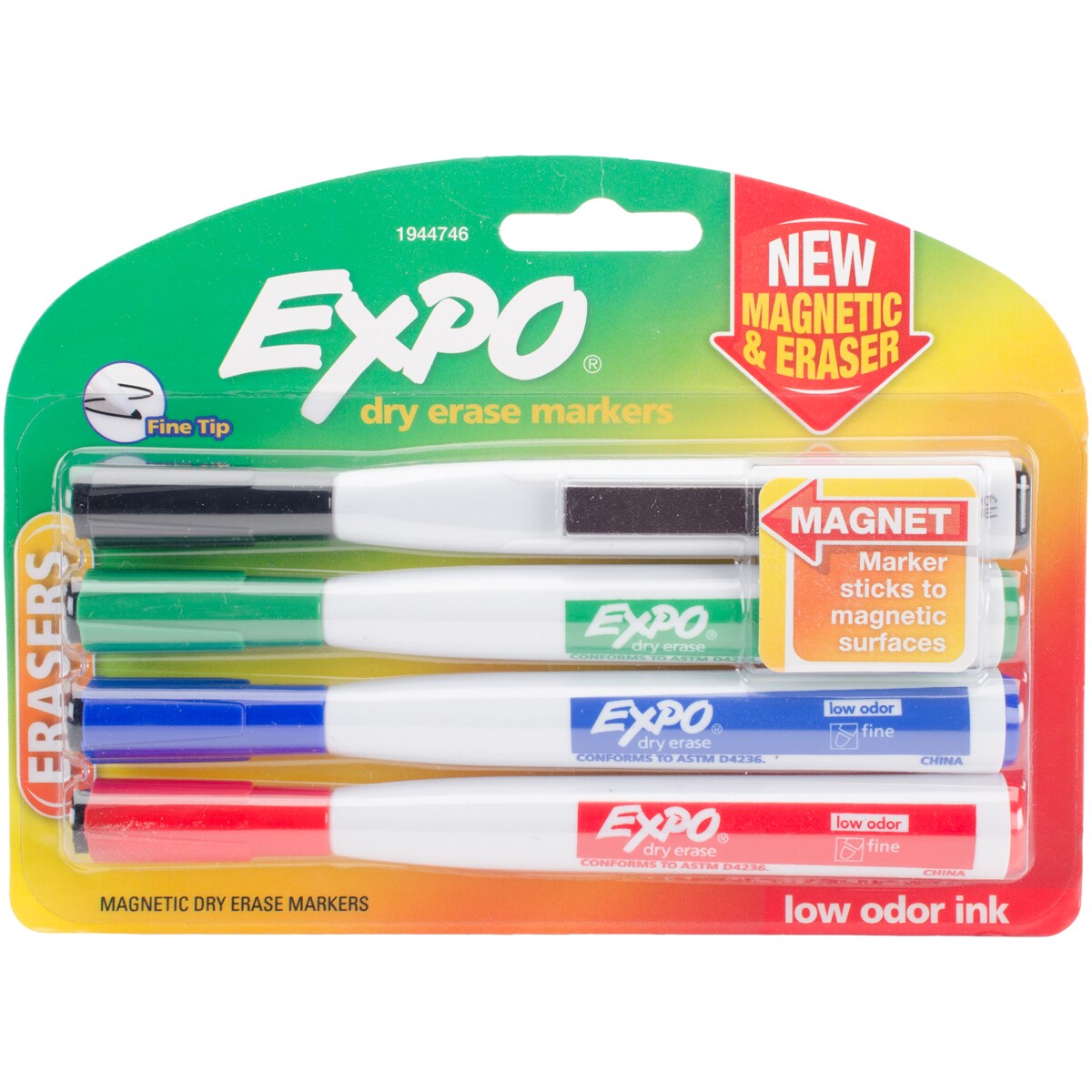 Expo Magnetic Fine Tip Dry Erase Marker With Eraser 4/Pkg-Assorted
