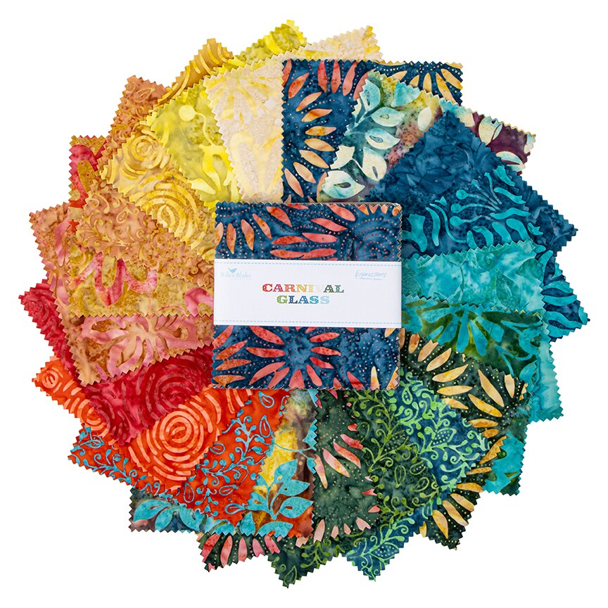 Expressions Batiks 5" Square Pack (Charm Pack / 5" Stacker) in Carnival Glass by Riley Blake Designs for Riley Blake (5-23366-42)