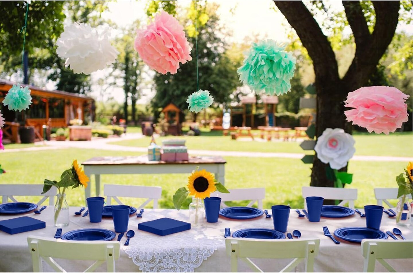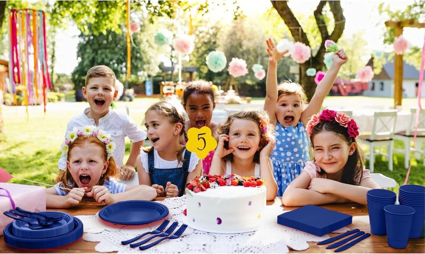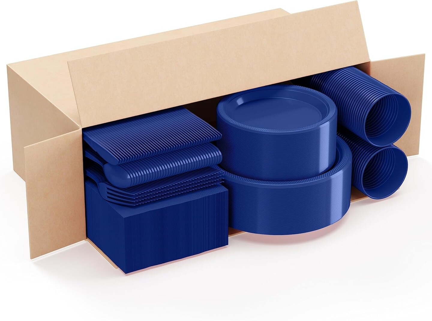 Exquisite 350 Pcs Plastic Plates for Party – Disposable Plates Set – 50 Each of 9" Dinner Plates, 7" Dessert Plates, Plastic Cups, Napkins & Plastic Cutlery – Plastic Dinnerware by Party Solids