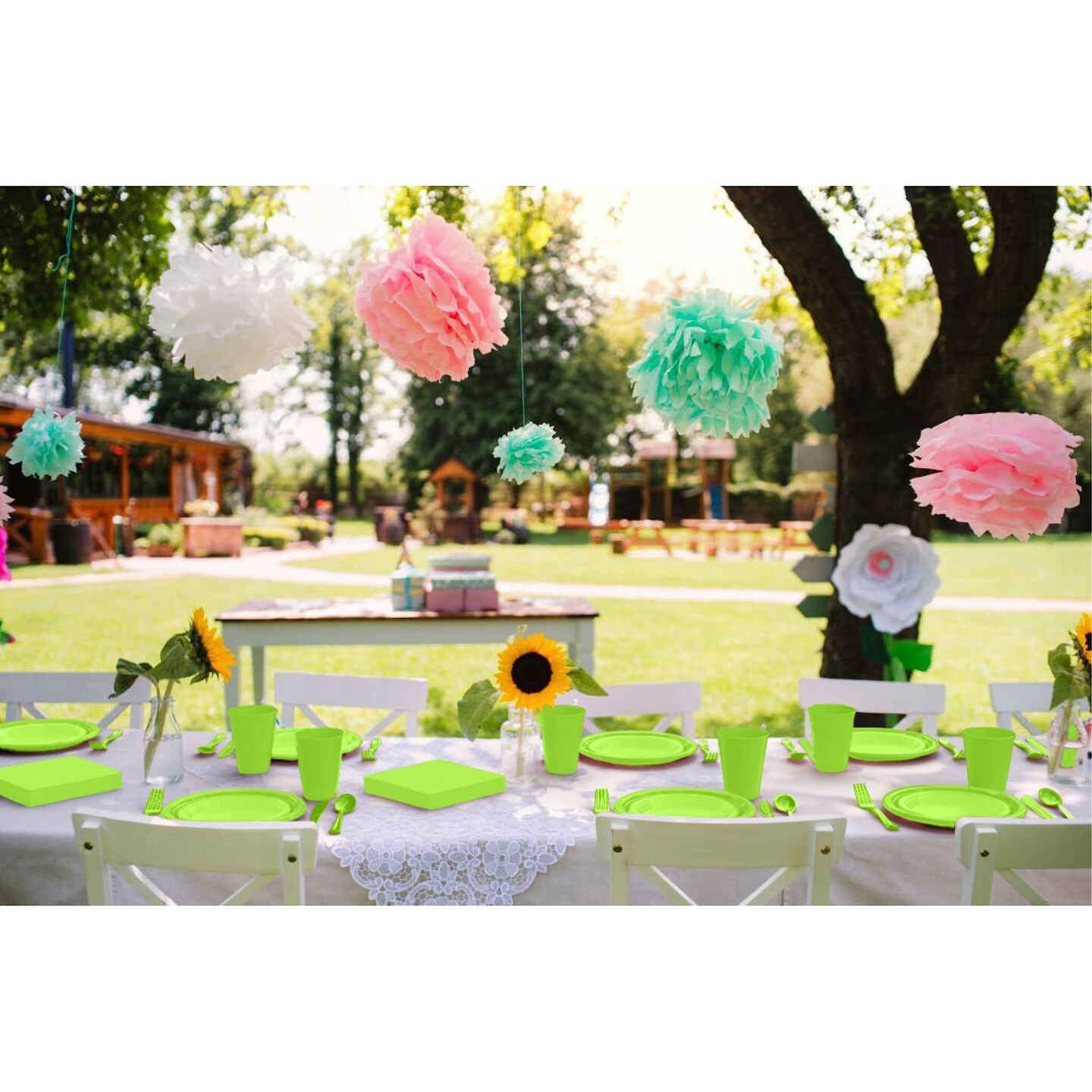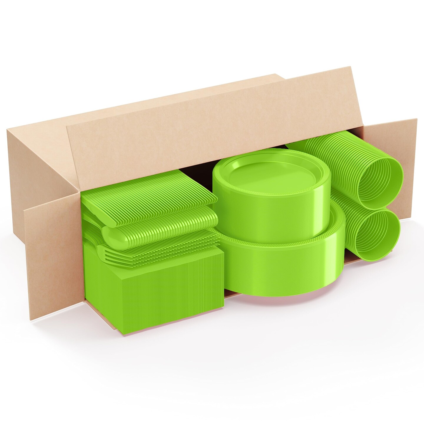 Exquisite 350 Pcs Plastic Plates for Party – Disposable Plates Set – 50 Each of 9" Dinner Plates, 7" Dessert Plates, Plastic Cups, Napkins & Plastic Cutlery – Plastic Dinnerware by Party Solids